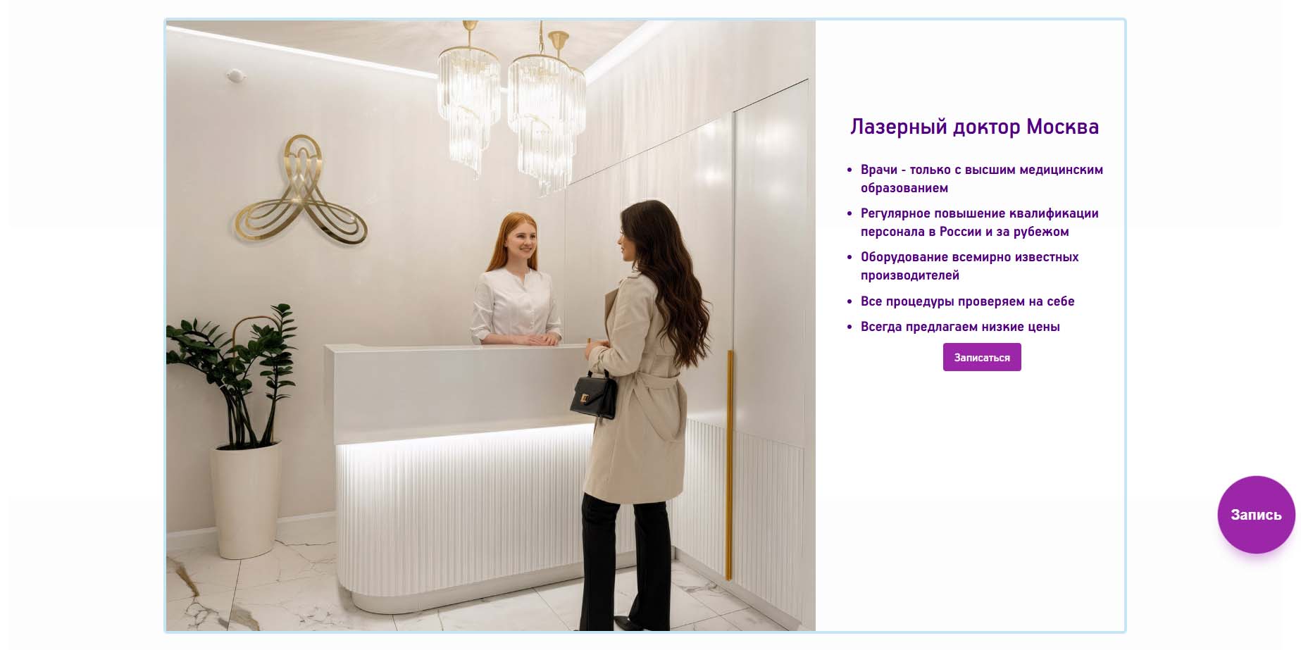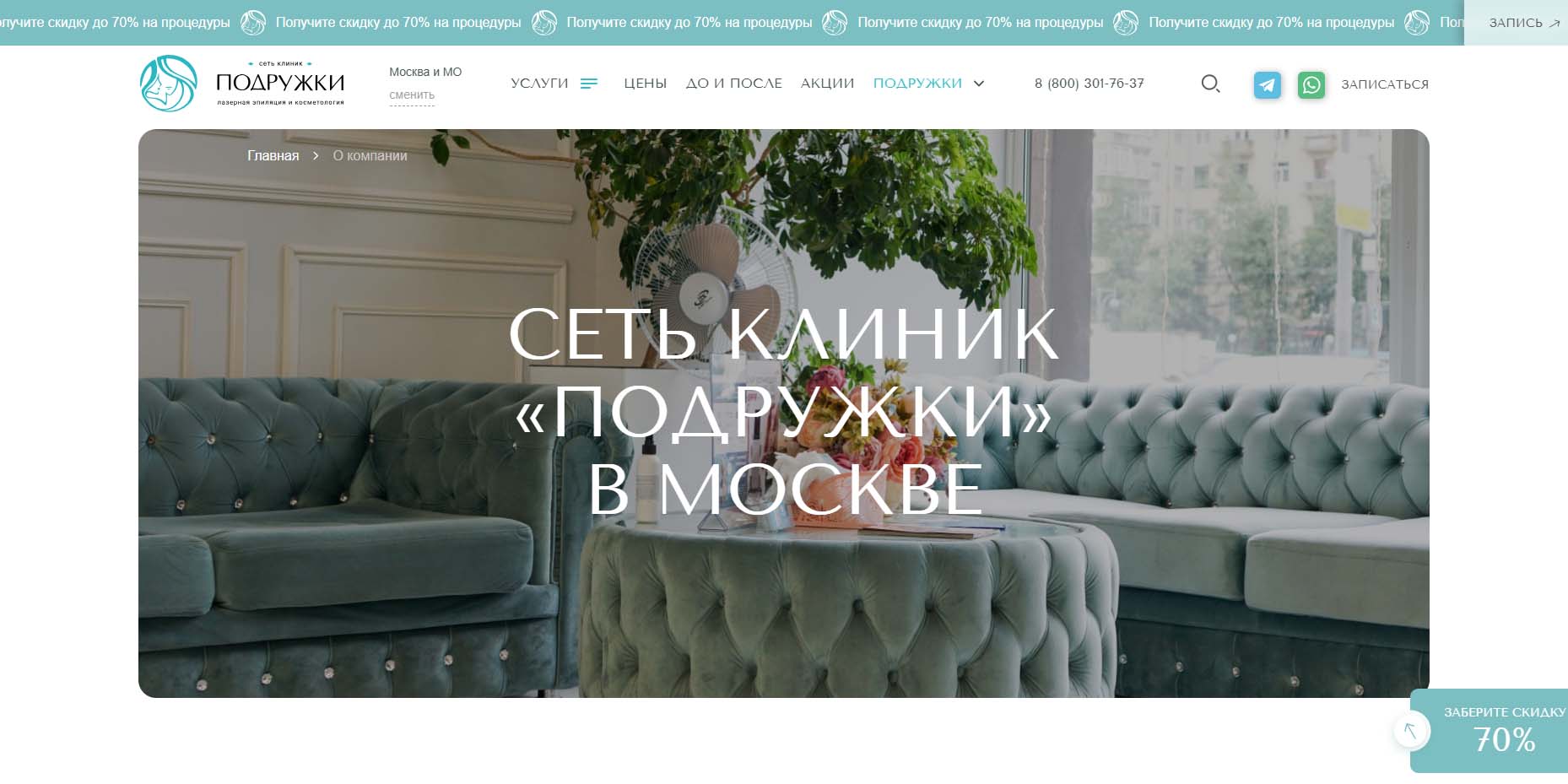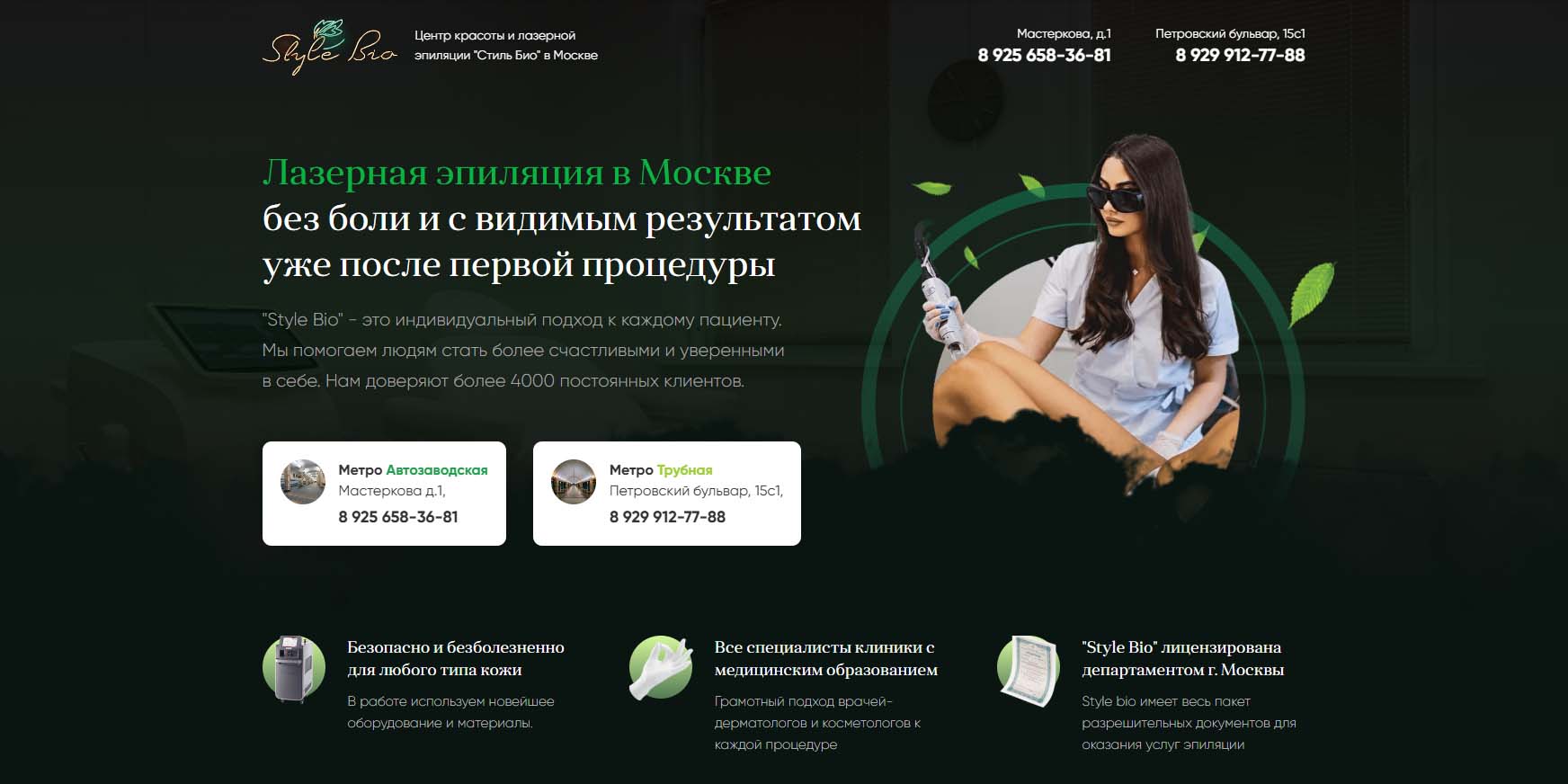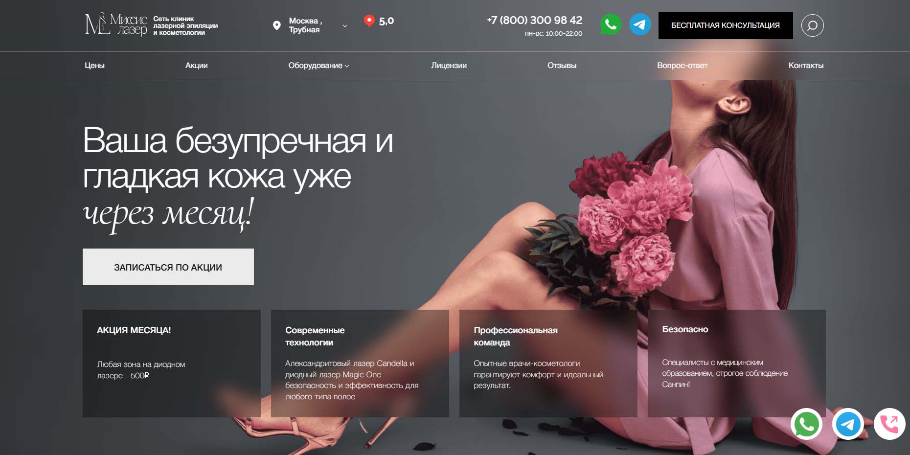 Сеть клиник лазерной эпиляции и косметологии позволяет клиентам получить видимый результат уже после первой процедуры. Клиники оснащены современным оборудованием для лазерной эпиляции, все специалисты — с медицинским образованием. В процессе работы соблюдается стерильность и используются одноразовые расходные материалы. Клиентам предлагается собственная линейка средств для ухода за кожей после эпиляции.