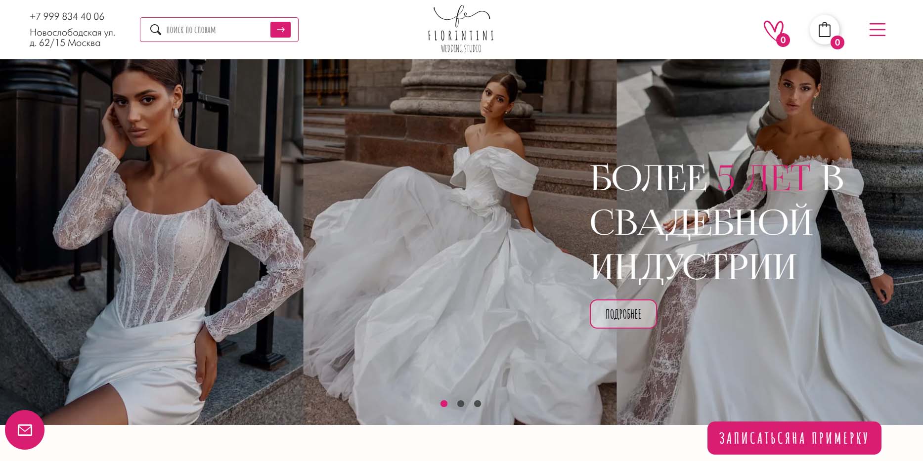 Предварительно можно ознакомиться с каталогом и задать вопросы онлайн на сайте свадебного салона «Ваниль», а затем записаться на примерку в удобное время.