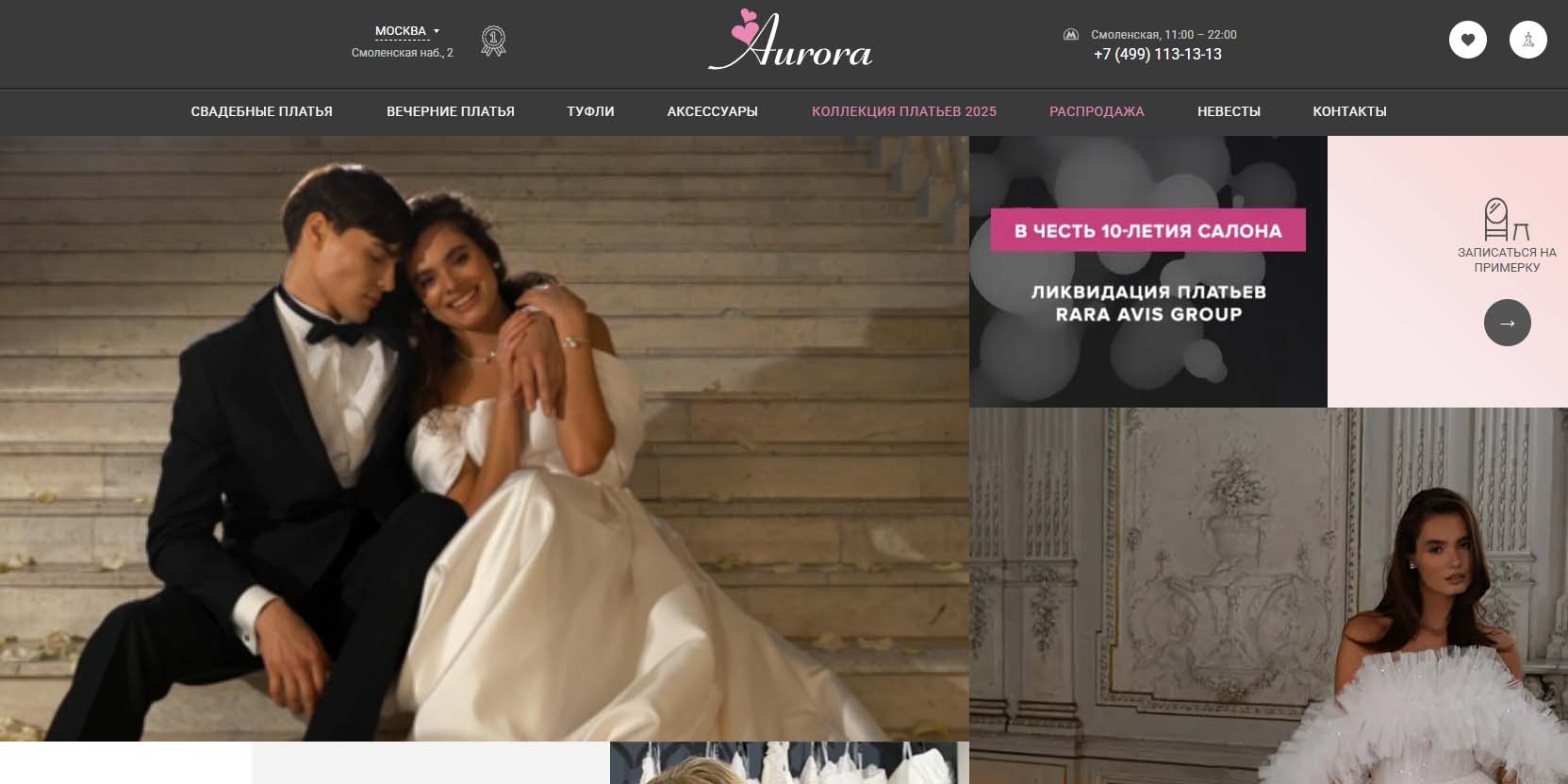 Предлагает свадебные наряды разных ценовых сегментов — всего в ассортименте более 5 тыс. моделей. Найти платье здесь можно и с весьма скромным бюджетом — есть модели от 10 тыс. рублей. Кроме того, в салоне представлены вечерние и коктейльные платья, соблазнительные будуарные наряды. Для комфортной примерки предусмотрены лаунж-зоны.