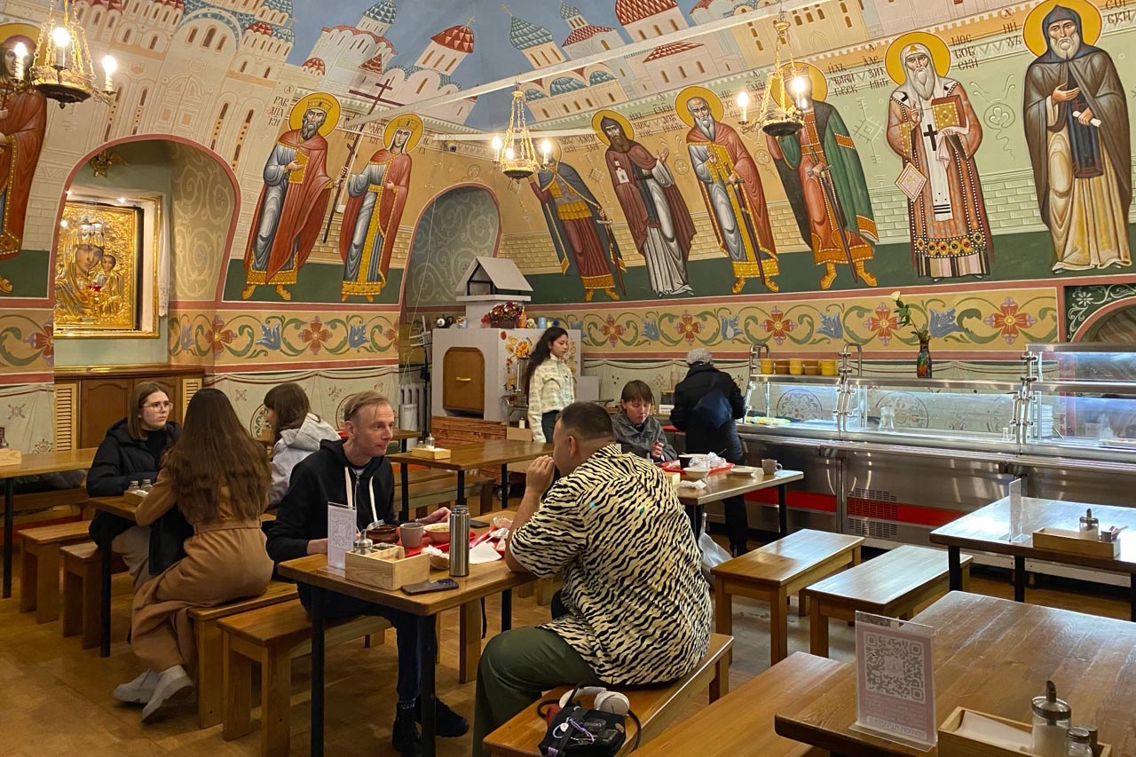 Это место — герой многочисленных тик-токов и «рилсов» в духе: «секретное место в самом сердце Москвы, где блюда в меню стоят меньше 100 рублей». Блогеры не лукавят. С точки зрения локации и цен в меню, эта трапезная и вправду — луч экономии в царстве туристических кафе. В «Зарядье» прямо за Гостиным двором сохранились несколько зданий Знаменского монастыря (ныне не действует). В подклете одного из них — та самая трапезная. Интерьеры очень скромные. Заказывать нужно через окошко на кухню. Порции — богатырские. Насчет того, вкусно ли кормят — мнения разнятся. Мы здесь трапезничали и даем такое резюме: среднестатистическая еда из столовой. Пальцы не облизываешь, но не морщишься как от «преснятины». Будьте готовы, что посуда тут крайне аскетичная.