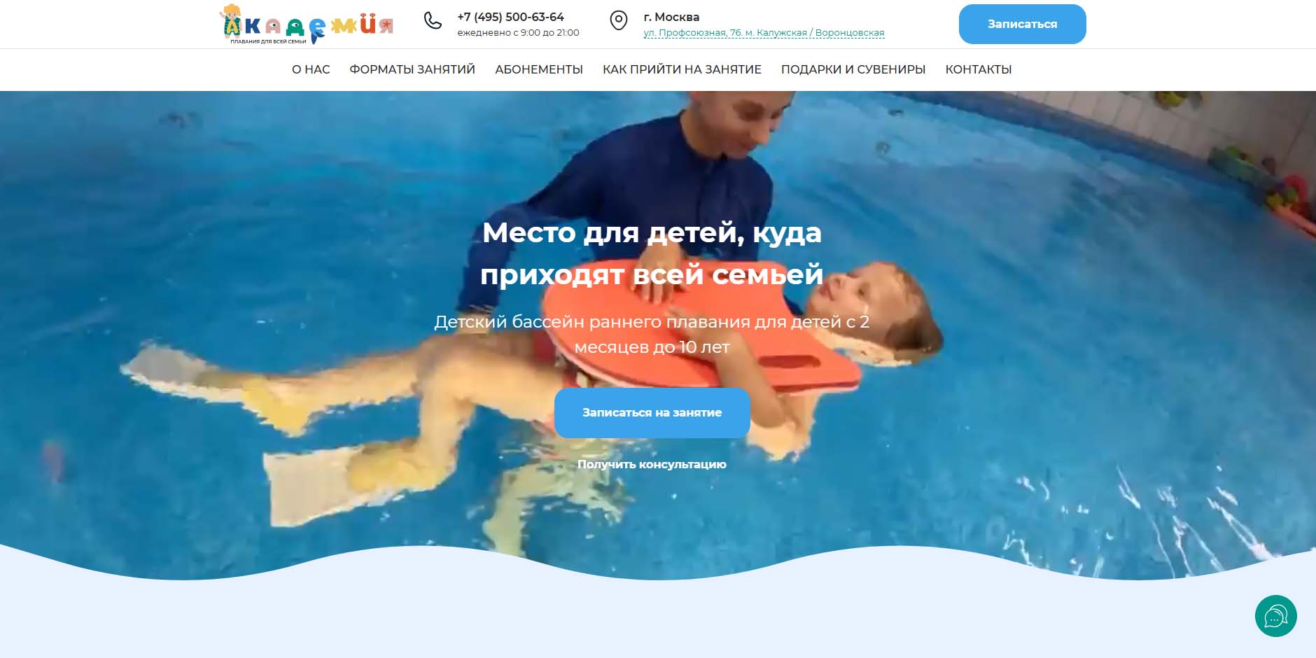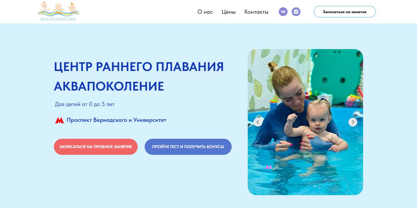 Выбор редакции — сеть плавательных центров «Детская бухта» в разных районах Москвы и ближайшем Подмосковье (Реутове). На уроки по плаванию приглашают детей с первого месяца жизни и до 7 лет. Занятия проводят исключительно в индивидуальном формате. Ребенка никто не отвлекает и не мешает сосредоточится на занятиях.