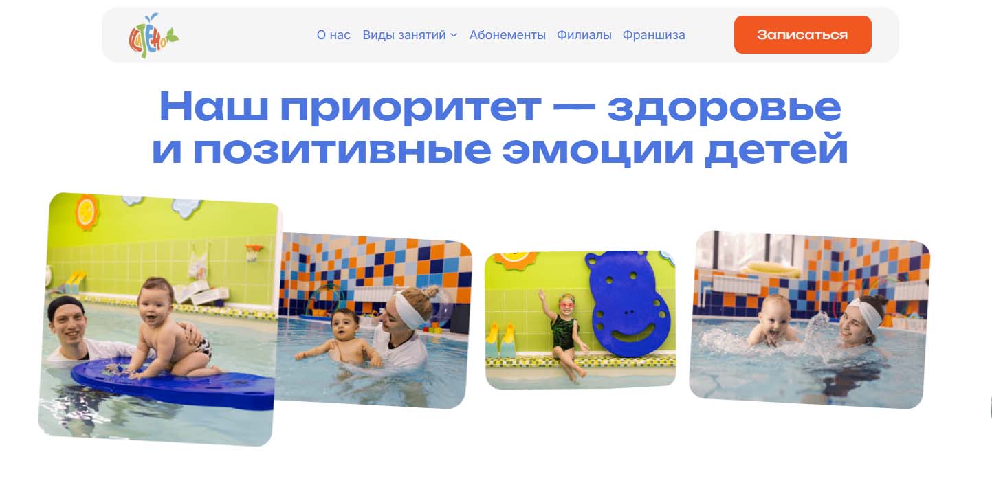 Федеральная сеть оздоровительных бассейнов для детей от 0 до 10 лет. В Москве и области работают больше 14 лет, открыты десятки филиалов в разных районах столицы. Все тренеры прошли многоэтапную подготовку по грудничковому, раннему плаванию, обучению плаванию детей дошкольного возраста и реабилитации. В клубах занимаются в формате: 1 бассейн-1 ребенок-1 тренер. Для комфортного пребывания малышей в воде ее температура держится на уровне 33-34°, каждые 30 минут весь объем воды полностью обновляется. Есть система абонементов.