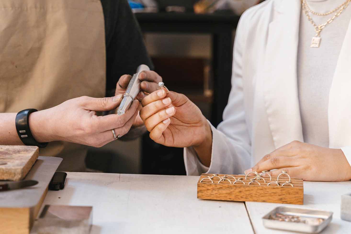 Важен не только вид (кольцо или сережки) или материал, инкрустация драгоценными камнями, но и форм-фактор. Большинство ювелирных мастерских работают по своим каталогам. Лучшие дают возможность продумывать дизайн изделия вместе с мастерами или разрешают прислать им фотографию понравившегося заказчику украшения.