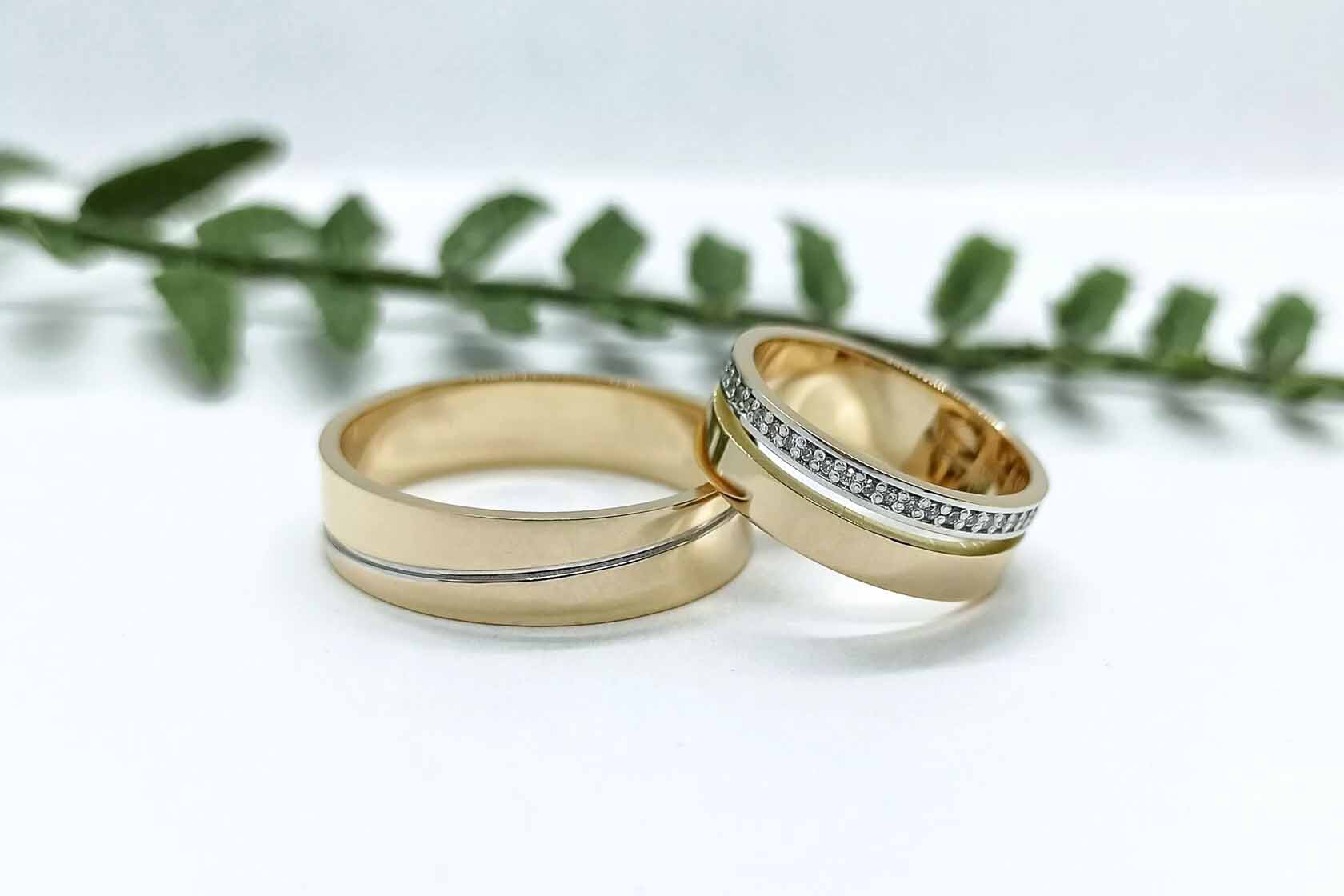 В каталоге мастерской есть классические варианты и новаторские формы колец. Например, фирменные «плетеные», с «мятыми» контурами или отпечатками пальцев будущих супругов. Из драгоценных камней мастерская готова предоставить бриллианты, либо более бюджетный вариант — искусственные бриллианты, муассаниты, бриллиантовый фианит, а также почти все виды любых других камней. Могут использовать и материал клиента, что существенно уменьшает стоимость изделия.
