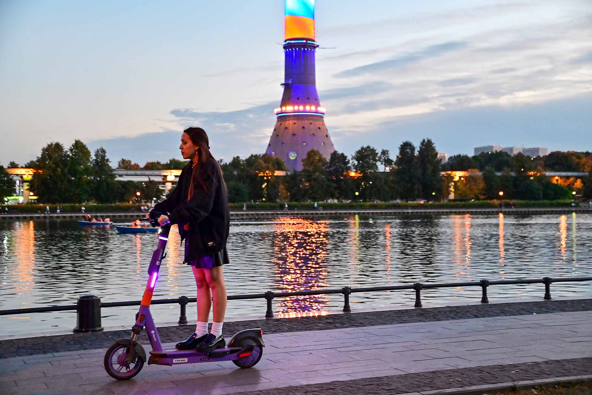 Красивый ландшафт берега Останкинского пруда тоже создает отличный фон для фото на память.