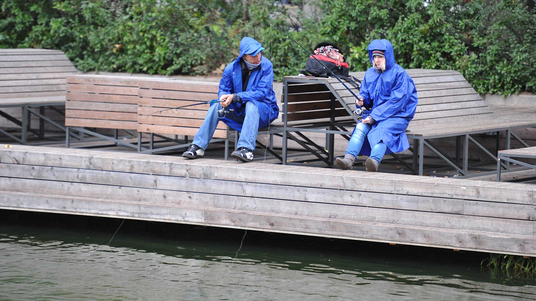На Голицынском пруду разрешена рыбалка. Перед тем, как запустить сюда рыбу, водоем тщательно очистили, а ихтиологи изучили его объем и пригодность воды для обитания живности.