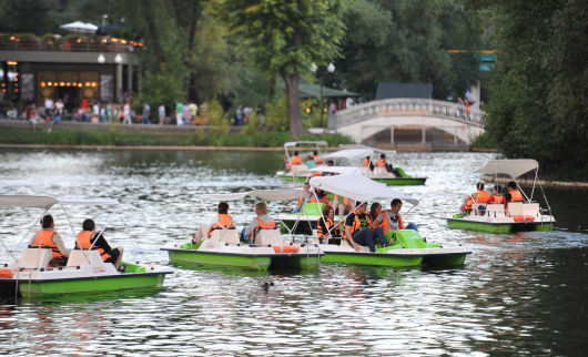 Голицынский пруд в парке Горького — по сути два водоема, которые соединены небольшим перешейком. Сегодня это облагороженная территория, где народ загорает, катается на лодках и даже рыбачит. Детям нравится наблюдать за уточками и лебедями. Кормить их нельзя, а вот фотографируются и снимают видео с ними все отдыхающие.