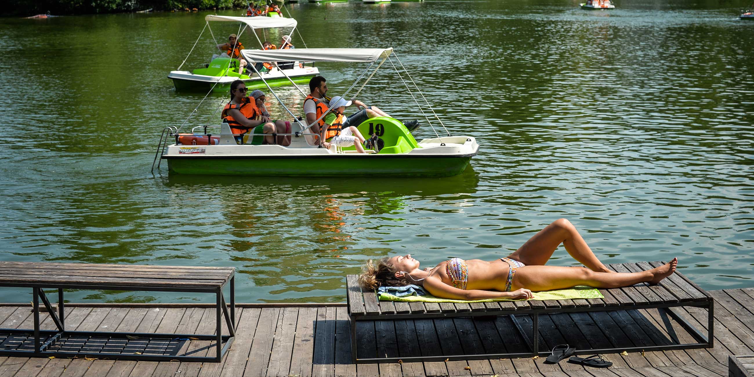 Можно взять в прокат катамаран и лодку, цена зависит от дня недели и количества пассажиров. Площадь озера большая, так что кататься можно свободно.