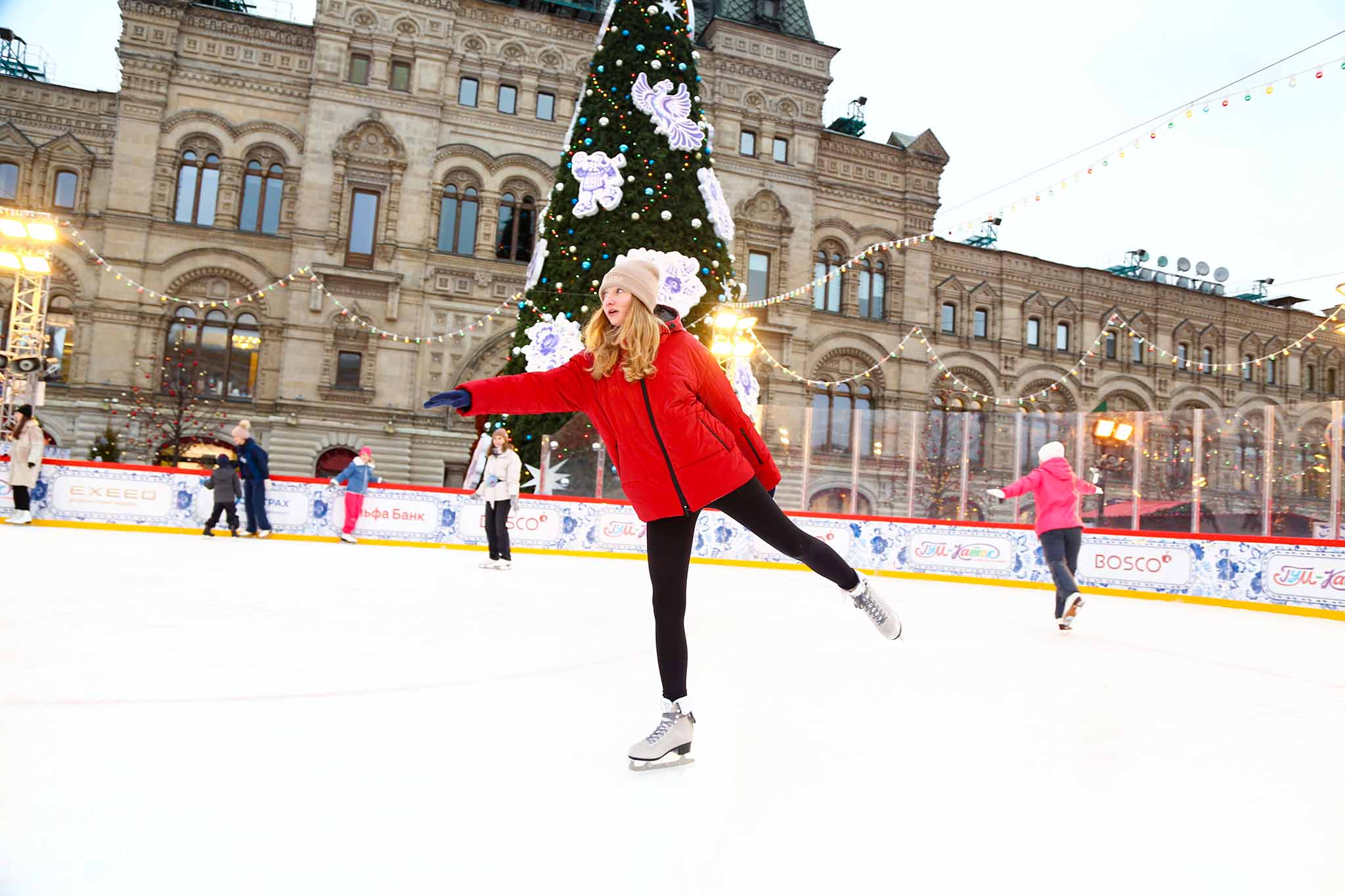 Впрочем, зимой Красная площадь выглядит по-особенному прекрасно. На ней заливают большой каток на 500 человек. Большой популярностью пользуется и рождественская ярмарка.