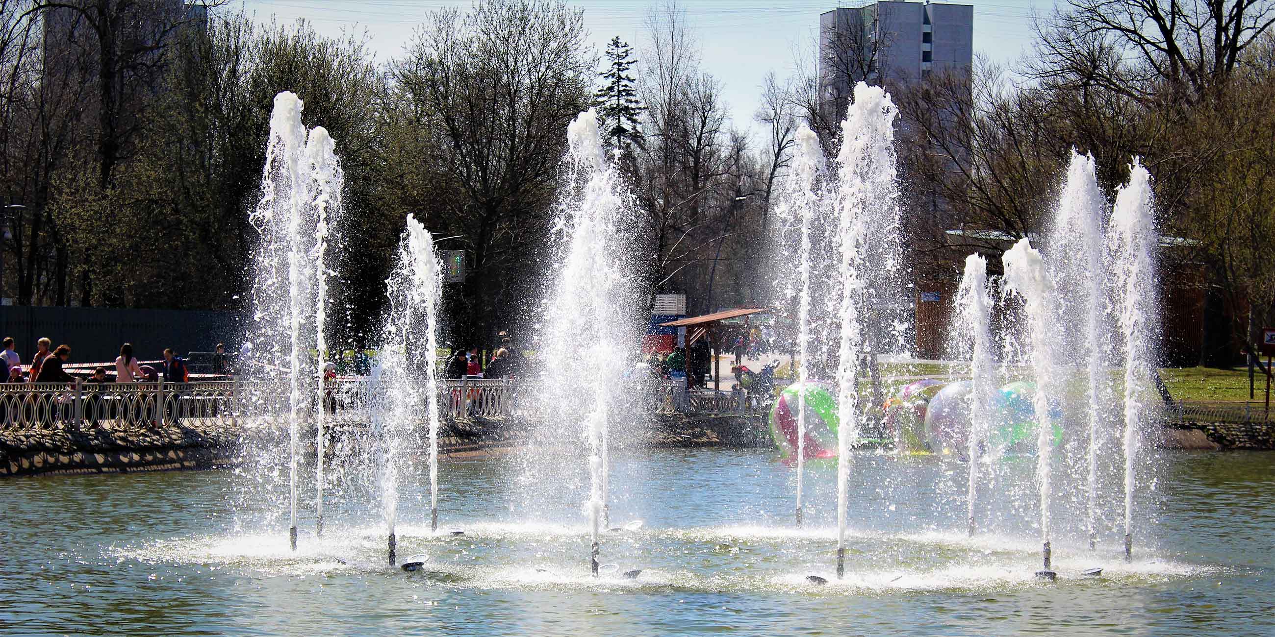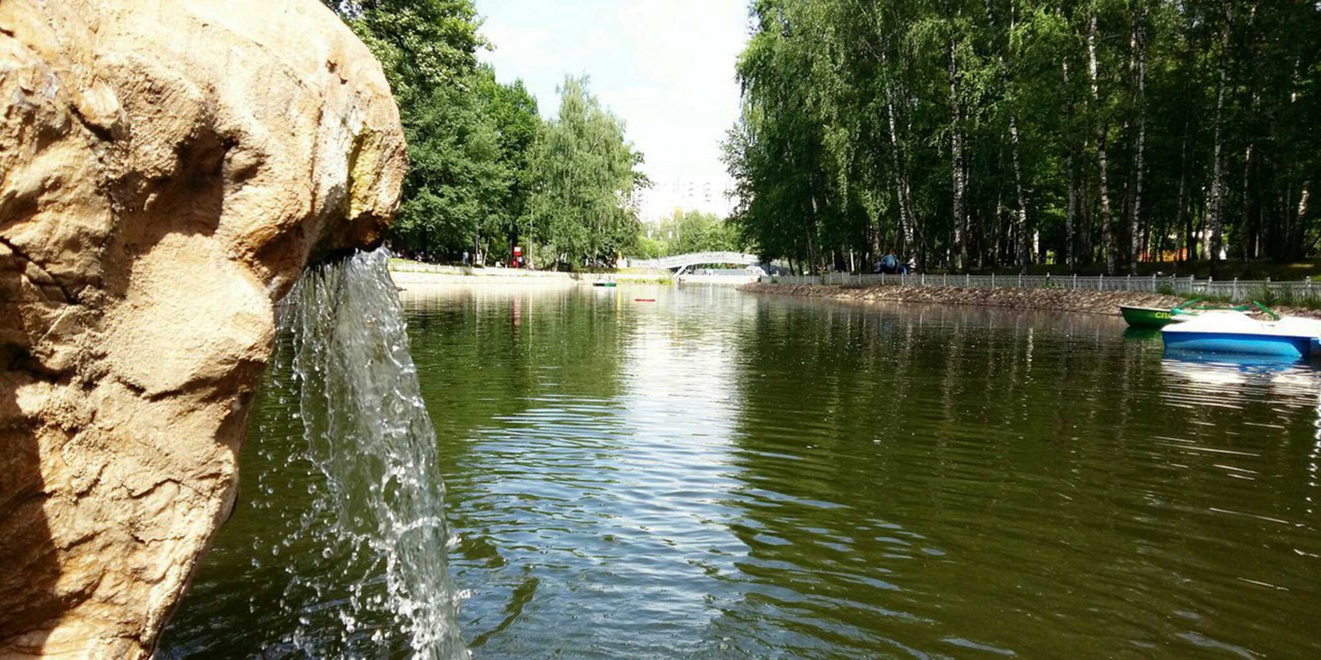 Летом тут работают 2 фонтана, беседка для настольных игр, площадка для игры в шахматы, волейбольная, теннисная и баскетбольная площадки, площадка для бадминтона. И, конечно, прокат лодок и катамаранов на пруду.