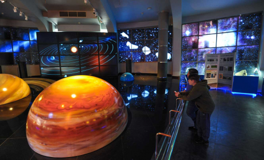 Здесь несколько залов, в самом большом из них — крупнейший в Европе 25-метровый купол со звездным небом.
