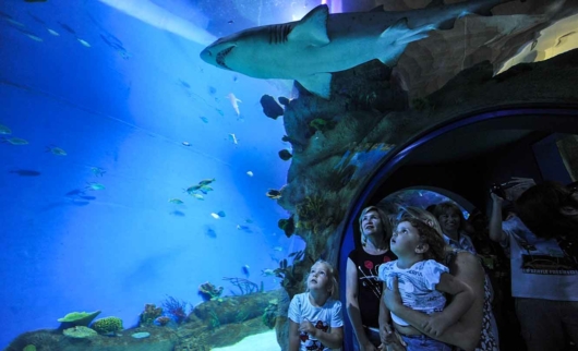 После того, как гости «погружаются в глубину», их уже не оторвать от прозрачных стен аквариума, за которыми, как в калейдоскопе, возникают его обитатели. Профессиональные гиды готовы рассказать о них на экскурсии.