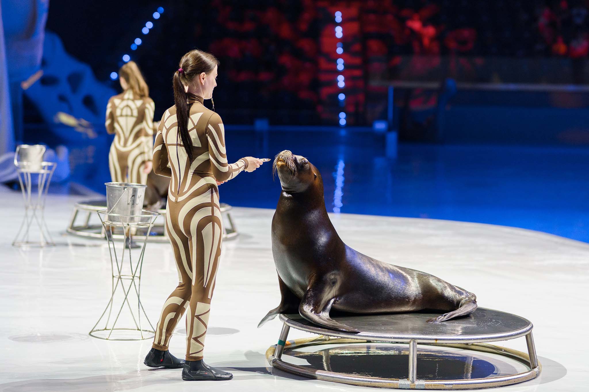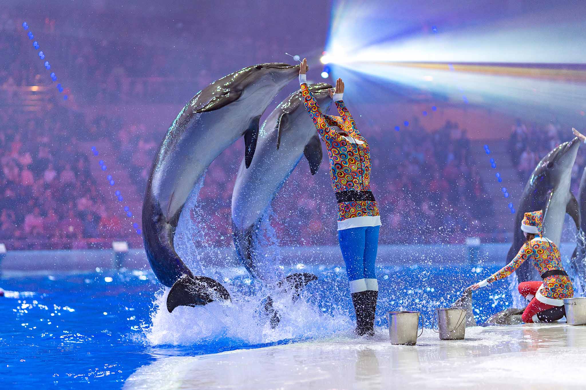 Знакомство с жителями Аквариума — это только часть большой программы для посетителей. На большой водной сцене Москвариума их ждут сразу несколько интереснейших шоу с участием морских животных: косаток, дельфинов, моржа и морских львов. Весной в репертуаре «Шоу воды», «Кругосветное путешествие», а также открытые тренировки «Ная. Знакомство с морскими обитателями», на котором зрители узнают много интересных фактов и понаблюдают за настоящими тренировками морских млекопитающих.