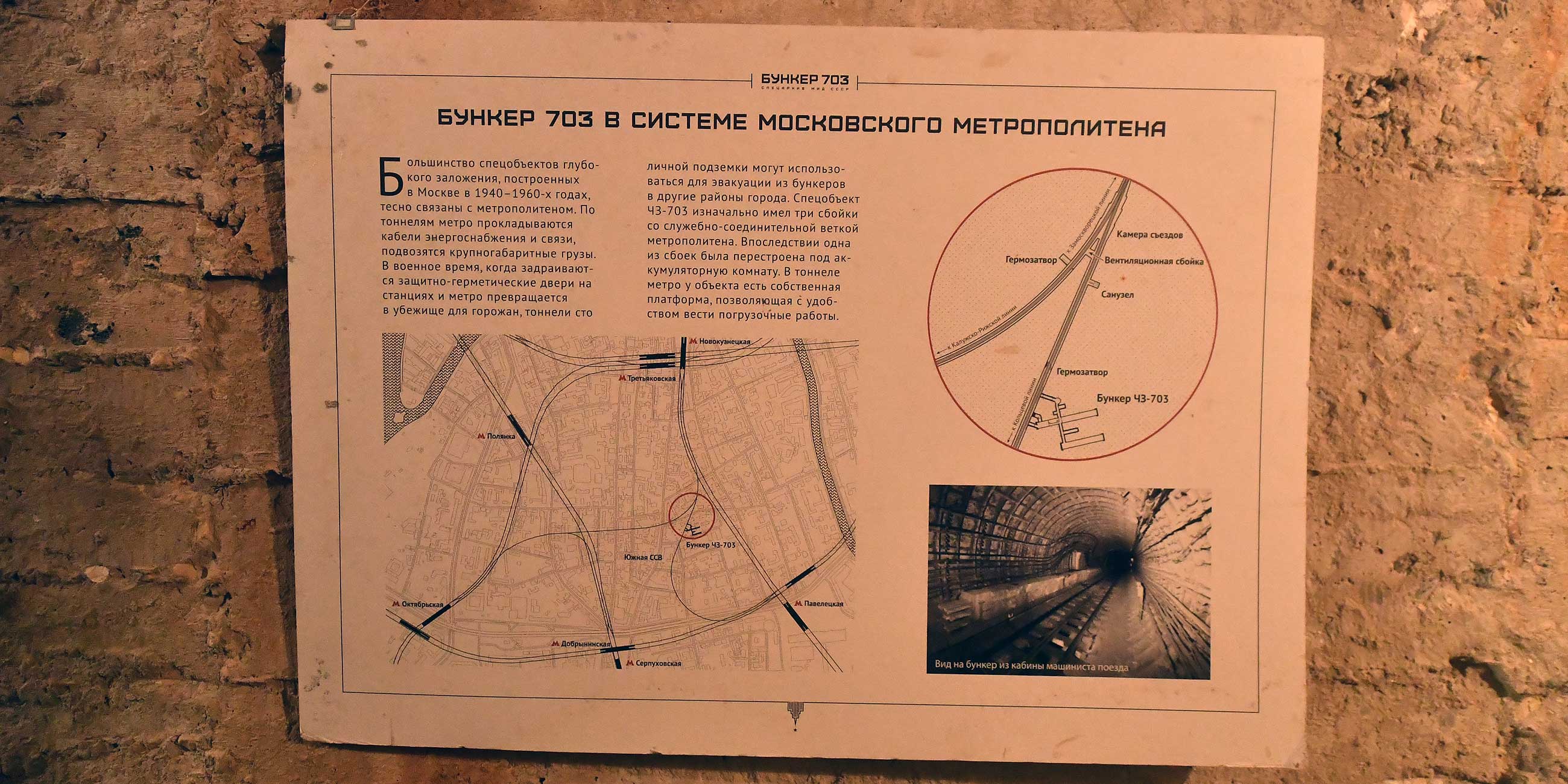«Бункер-703» в Москве стал хитом «Ночи в музее» в 2019 году и опередил все учреждения по посещаемости. Неприметный скучный особняк за высоким каменным забором во 2-м Новокузнецком переулке — все, что видно простому горожанину. Но это только маскировочное сооружение. Под зданием на глубине в 43 метра располагается более 1200 квадратных метров помещений. Еще несколько лет назад здесь хранились секретные документы Министерства иностранных дел и допуск был только по спецпропуску. Теперь же тут музей «Бункер-703 МИД СССР» в Москве, и сюда водят экскурсии.