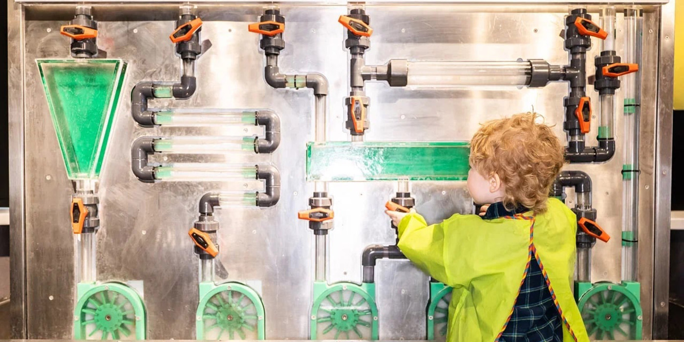 В музее находится уникальная водная инсталляция. Самому создать водоворот или управлять водяной мельницей, попутно изучая законы гидродинамики, безумно интересно. А чтобы не намочить одежду при этом веселом занятии, можно бесплатно воспользоваться специальной накидкой.