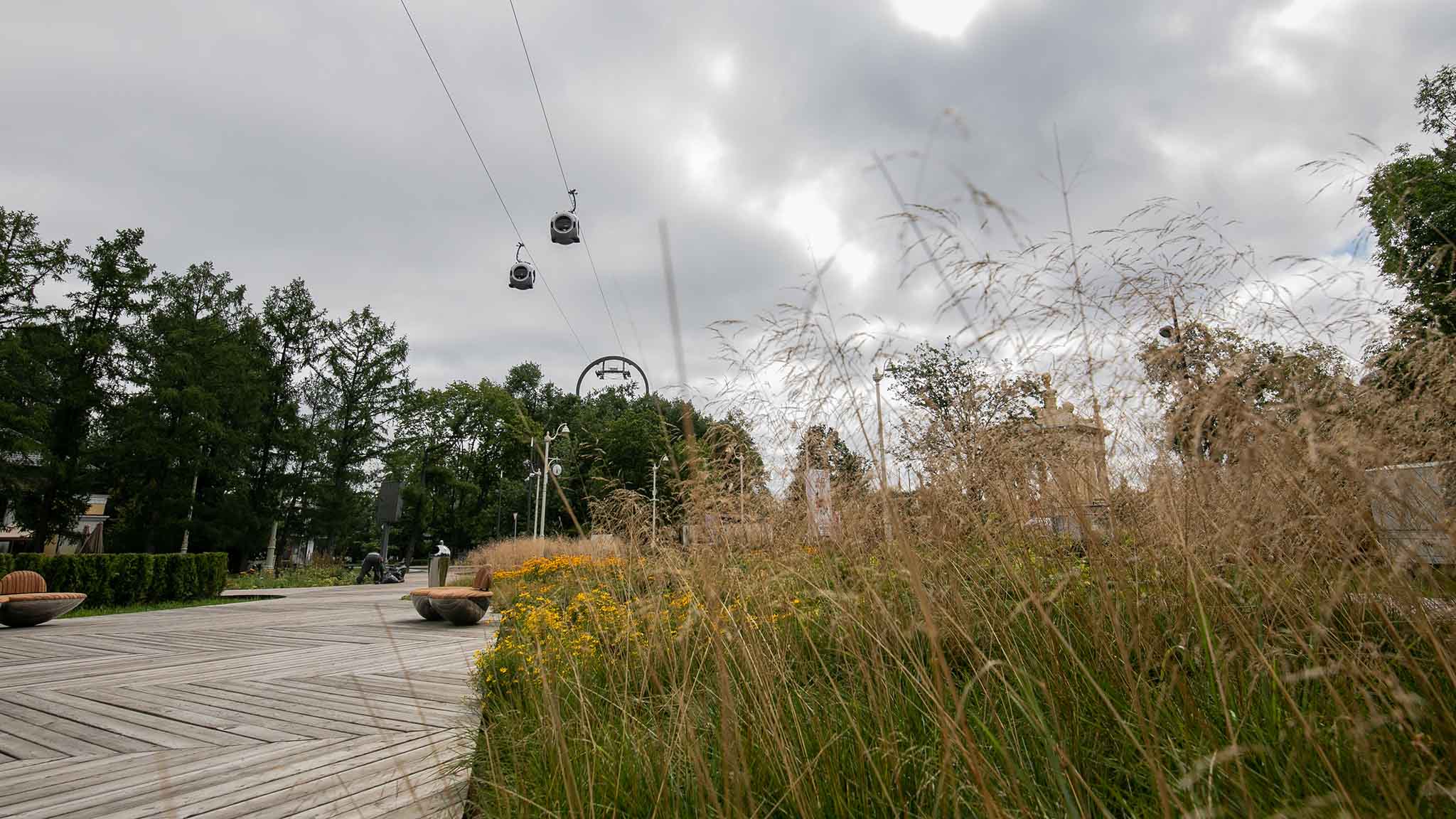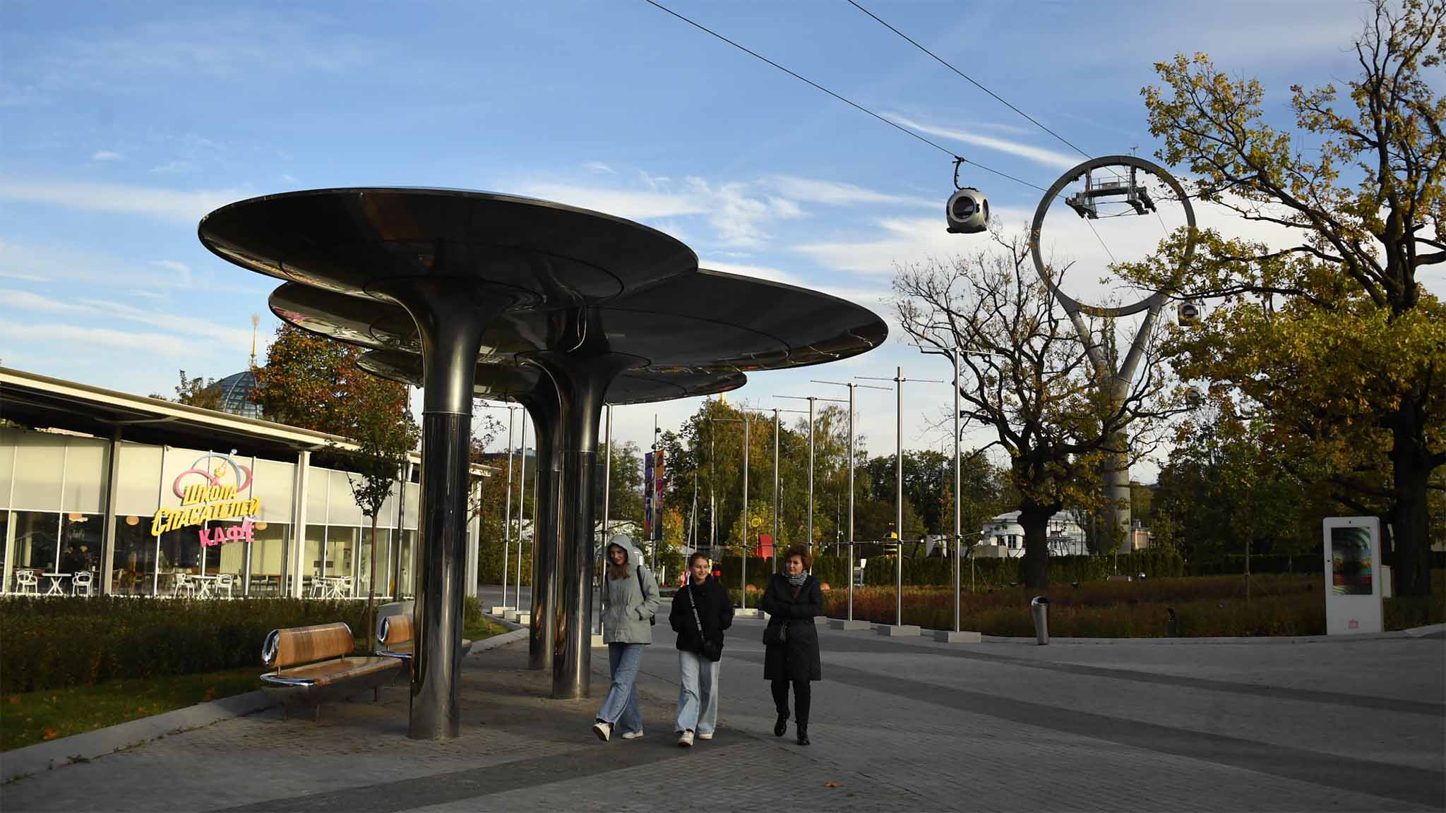 Интересные снимки получатся во время путешествия на канатной дороге — сверху можно запечатлеть виды на главную аллею ВДНХ. Необычные кадры можно сделать у станций «Воздушного трамвая» и футуристичных зданий на территории комплекса.