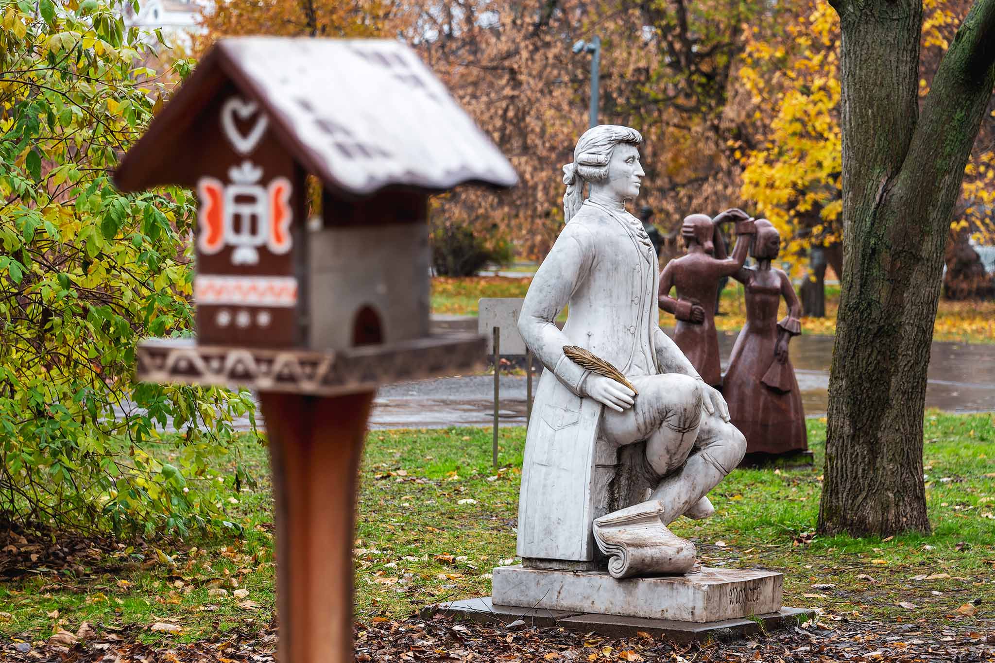 Самой любопытной частью парка является выставка монументов советской эпохи. Здесь выставлено множество памятников и декоративных статуй, например, воин с гранатой в одной руке и с автоматом в другой, памятник жертвам сталинских репрессий и другие изваяния.