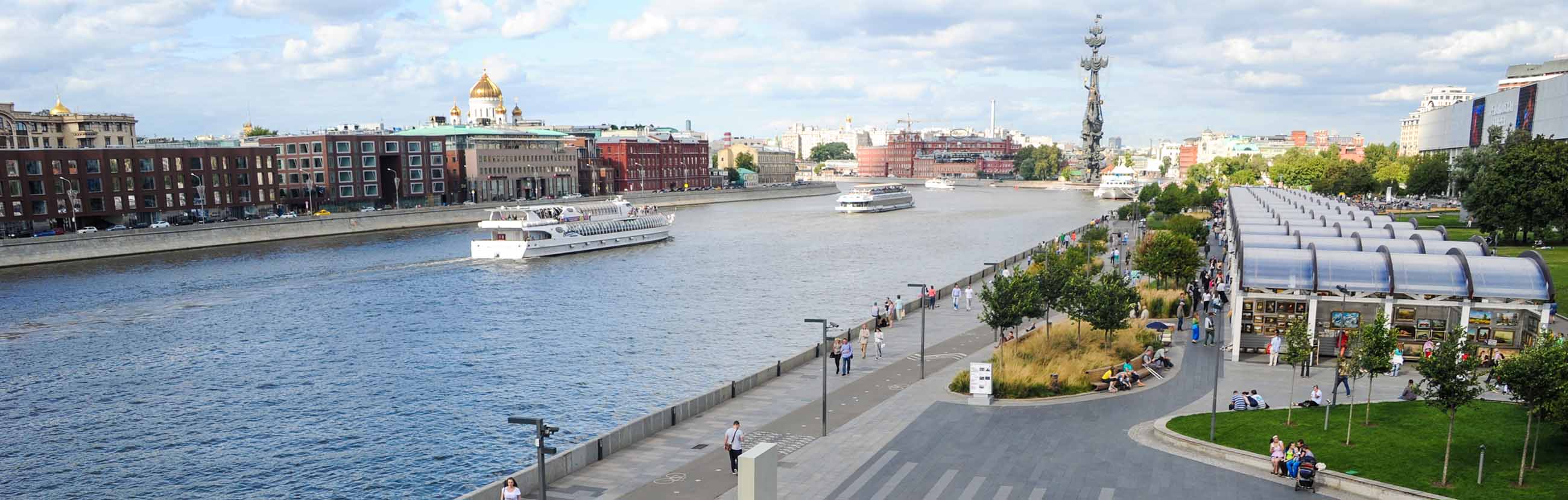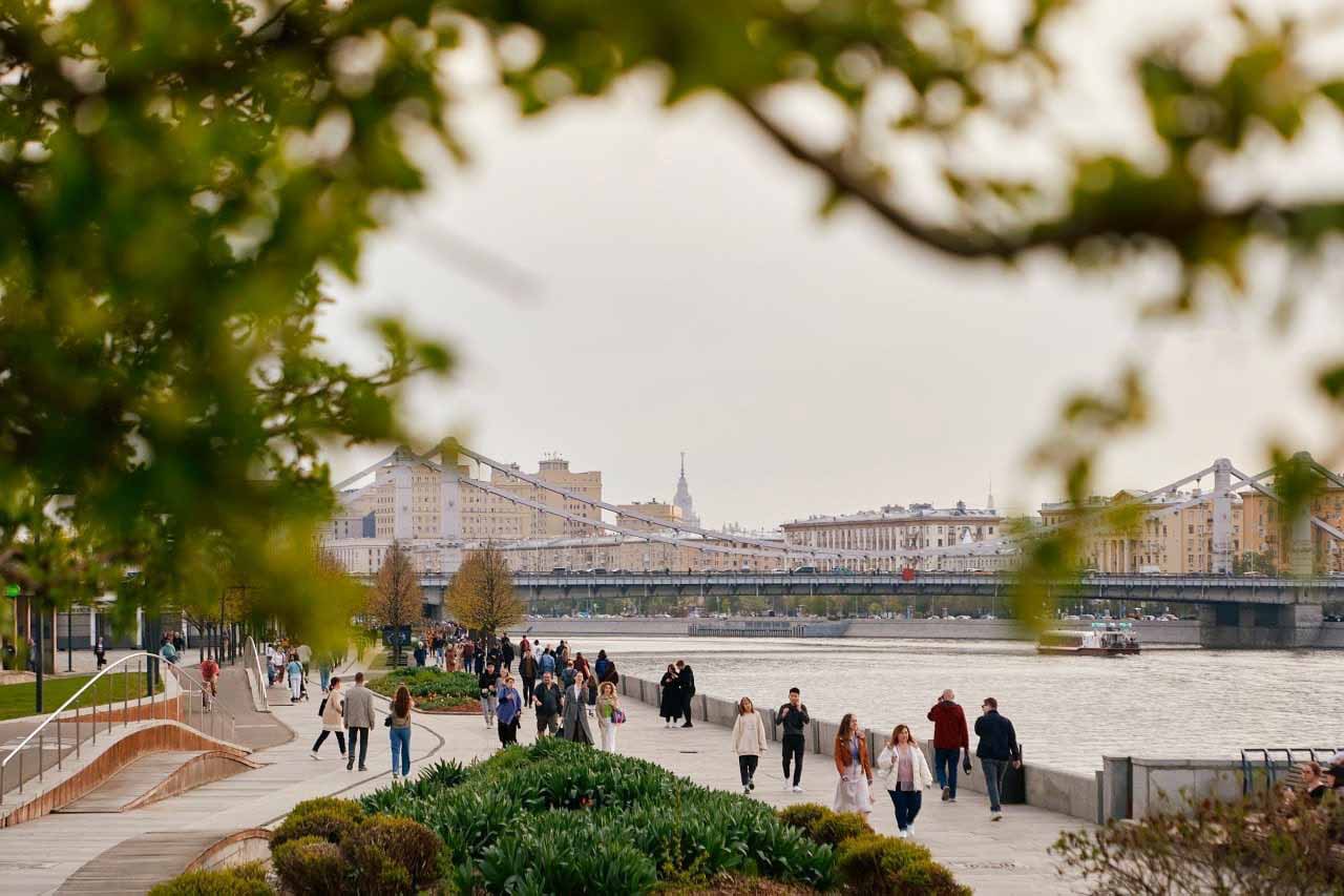 С 2013 года частью парка стал обновленный пешеходный променад, который протянулся по правому берегу реки Москвы. Крымская набережная имеет длину 900 м и выполнена в едином архитектурном стиле, построенном вокруг темы волны.