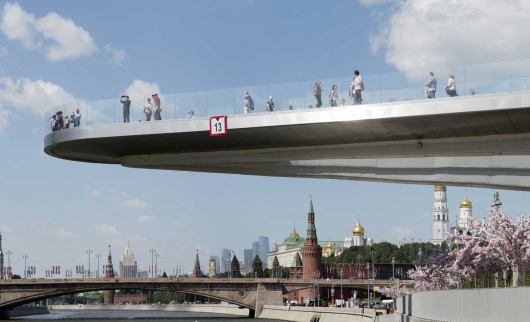 Весной и летом парк «Зарядье» в Москве полон отдыхающих, а в праздники на Парящий мост выстраиваются очереди.