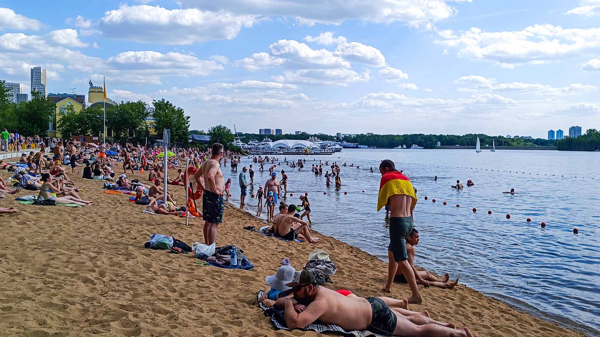 Первое, чему дивится каждый гость — качество и внешний вид песка. Мальдивы и Бали уважительно подмигивают московскому пляжу. Песок тут, конечно, привезенный. Но отдыхающие в восторге. Заход в воду удобный, а Химкинское водохранилище здесь чистое.