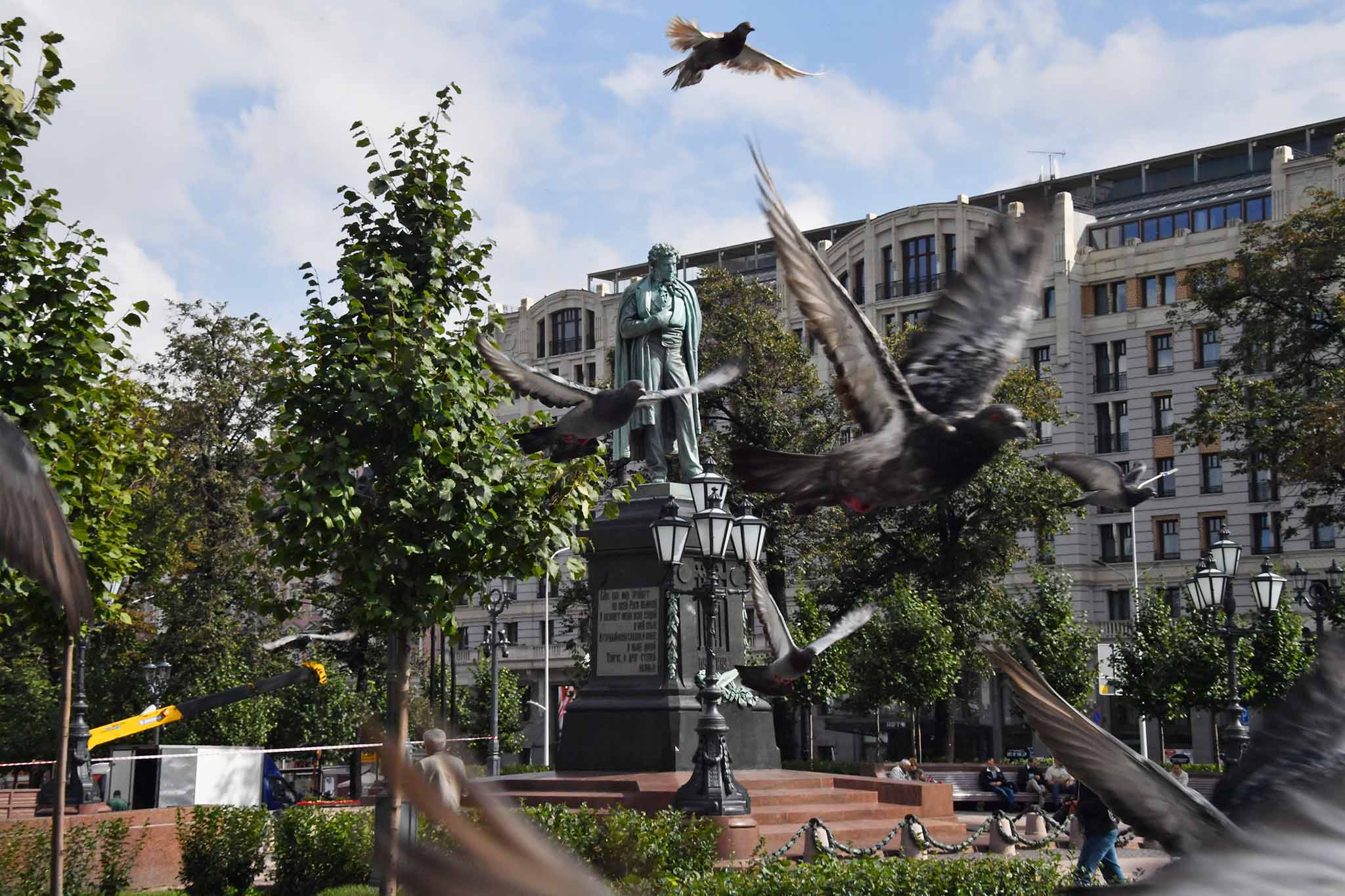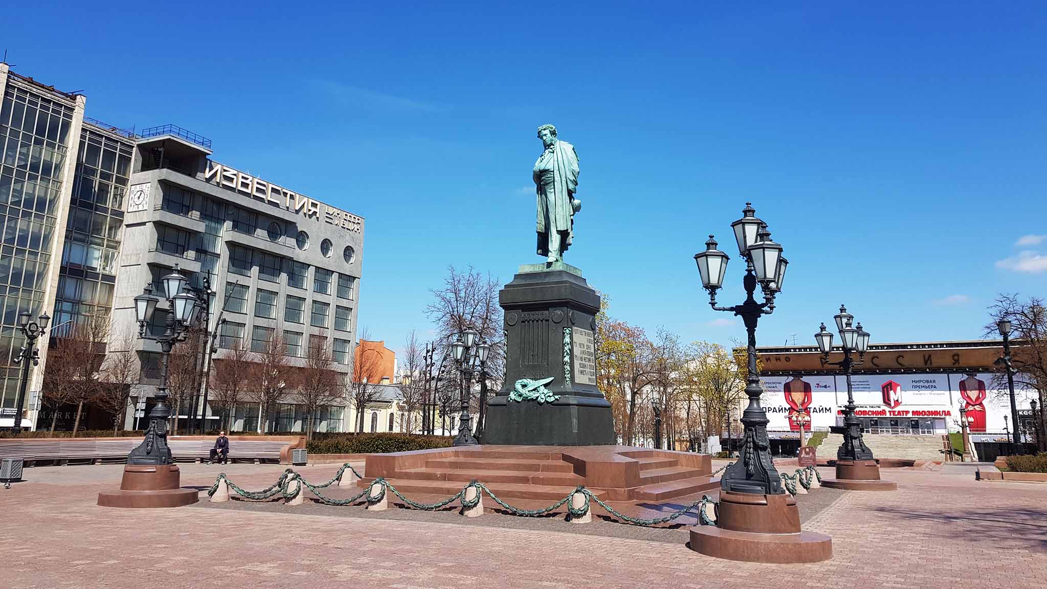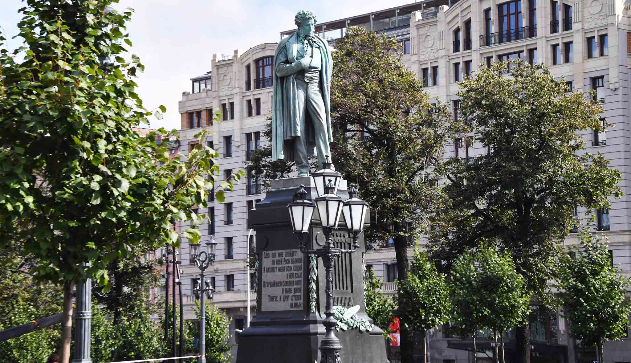 На постаменте – строчки из стихотворения «Я памятник себе воздвиг нерукотворный…». Изначально некоторые строчки изменили по цензурным соображениям – вместо всем нам с детства знакомых слов «Что в мой жестокий век восславил я Свободу» написали: «Что прелестью живой стихов я был полезен». В 1936 году на постамент вернули оригинал стиха. Свобода тогда казалась достигнутой… Одновременно приближался 1937-й – год страшных репрессий, расстрелов и сноса Страстного монастыря.