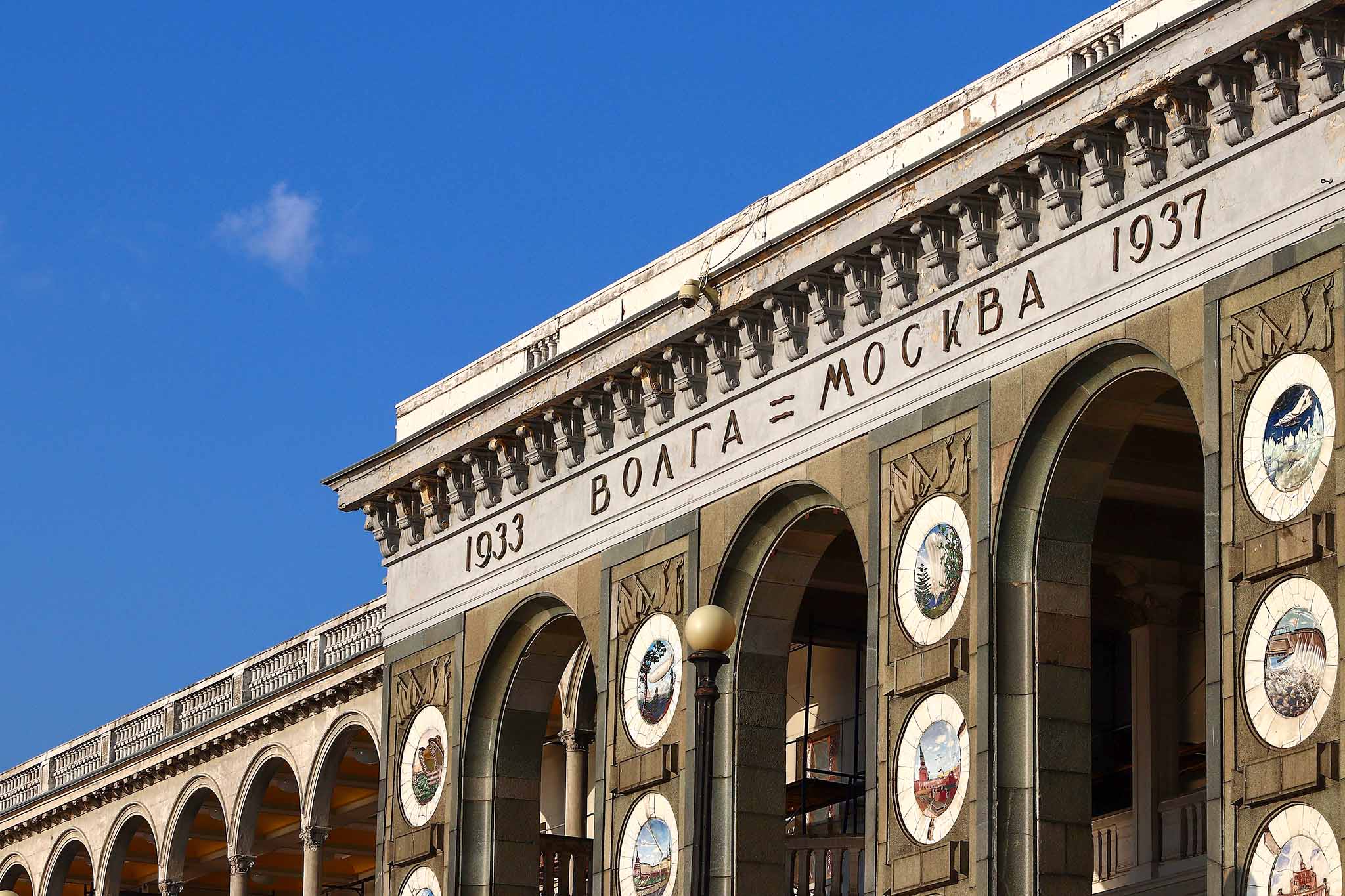 Северный речной вокзал появился в одно время с каналом «Москва-Волга» (с 1947 года – «Каналом имени Москвы»). Необычное здание – дело рук заключенных Дмитровлага, а проект подготовили архитекторы Алексей Рухлядев и Владимир Кринский. Сам вокзал, расположенный рядом порт и причалы, были построены в рекордно короткие сроки в 1933-1937 годах на сухом берегу, до того, как вода заполнила Химкинское водохранилище.