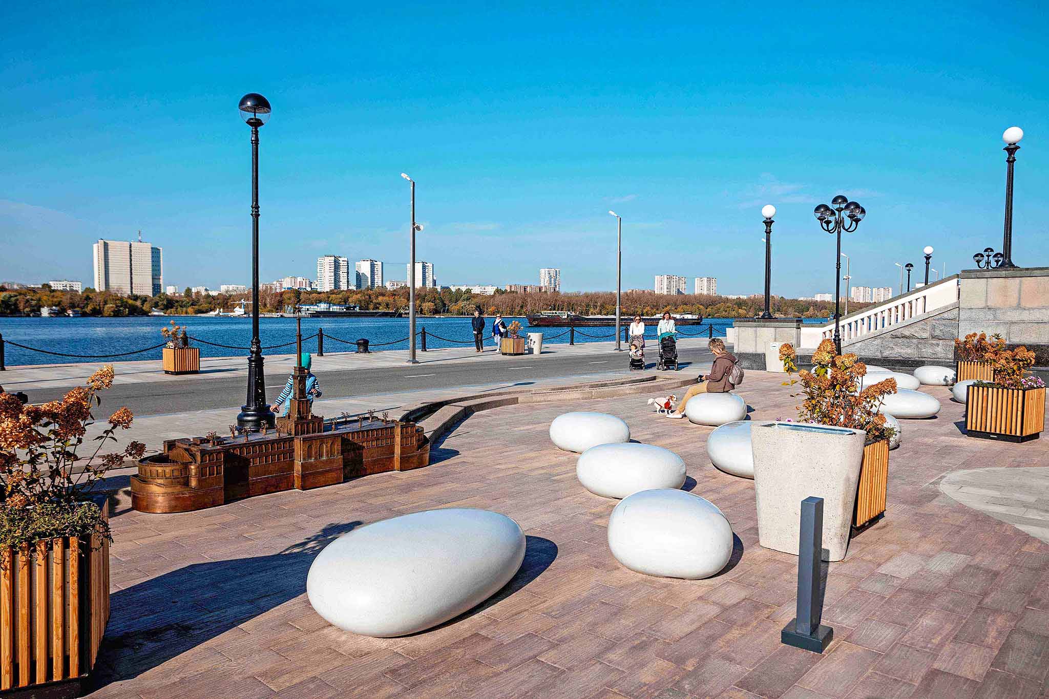 Само здание и прогулочная зона площадью 49 га доступны в любое время года. Зимой, весной, летом и осенью панорама реки Москвы выглядит живописно. Причем каждый сезон окрашивает речные берега в свои цвета и создает особую атмосферу.