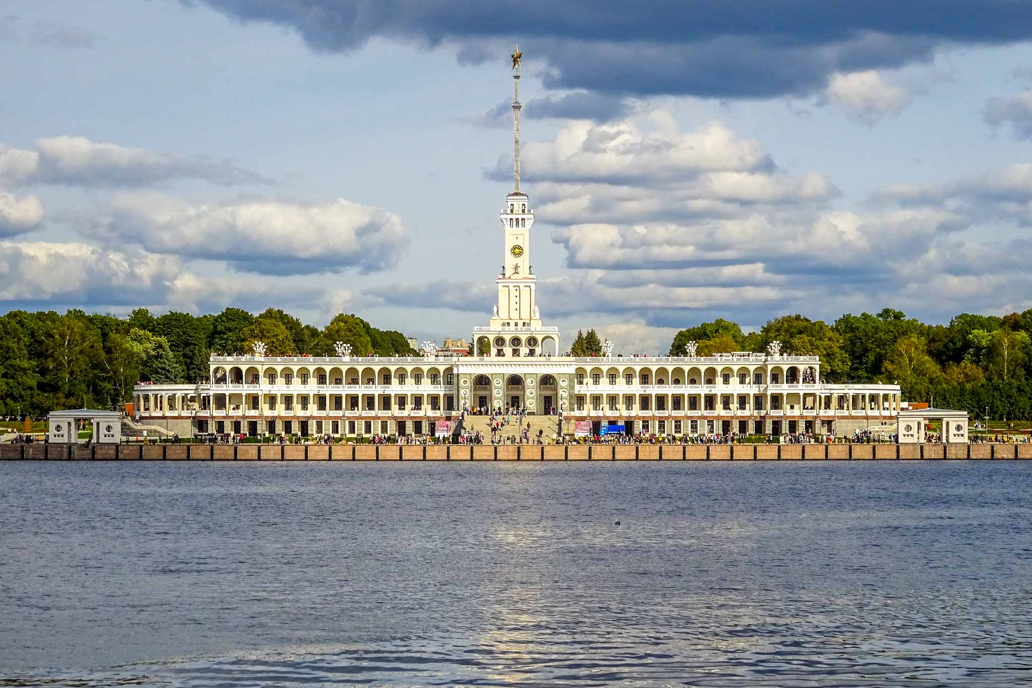 Величественная постройка на берегу Химкинского водохранилища в Москве привлекает внимание издалека, потому что напоминает пришвартованный у причала огромный пароход. Яркий образец сталинского ампира отличается легкой воздушной архитектурой и открытыми галереями с фонтанами. Сюда приходят, чтобы полюбоваться цветными витражами, мозаичными полами, облицовкой колонн и центральной башней со шпилем со звездой. Многих интересуют экспонаты небольшого музея транспорта. Северный речной вокзал – не только любимое москвичами место отдыха. Вы можете совершить приятную прогулку на колесном ретро-пароходе и современном речном трамвае по Москве-реке, отправиться в многодневный круиз по Волге, в Санкт-Петербург или по Золотому кольцу России.