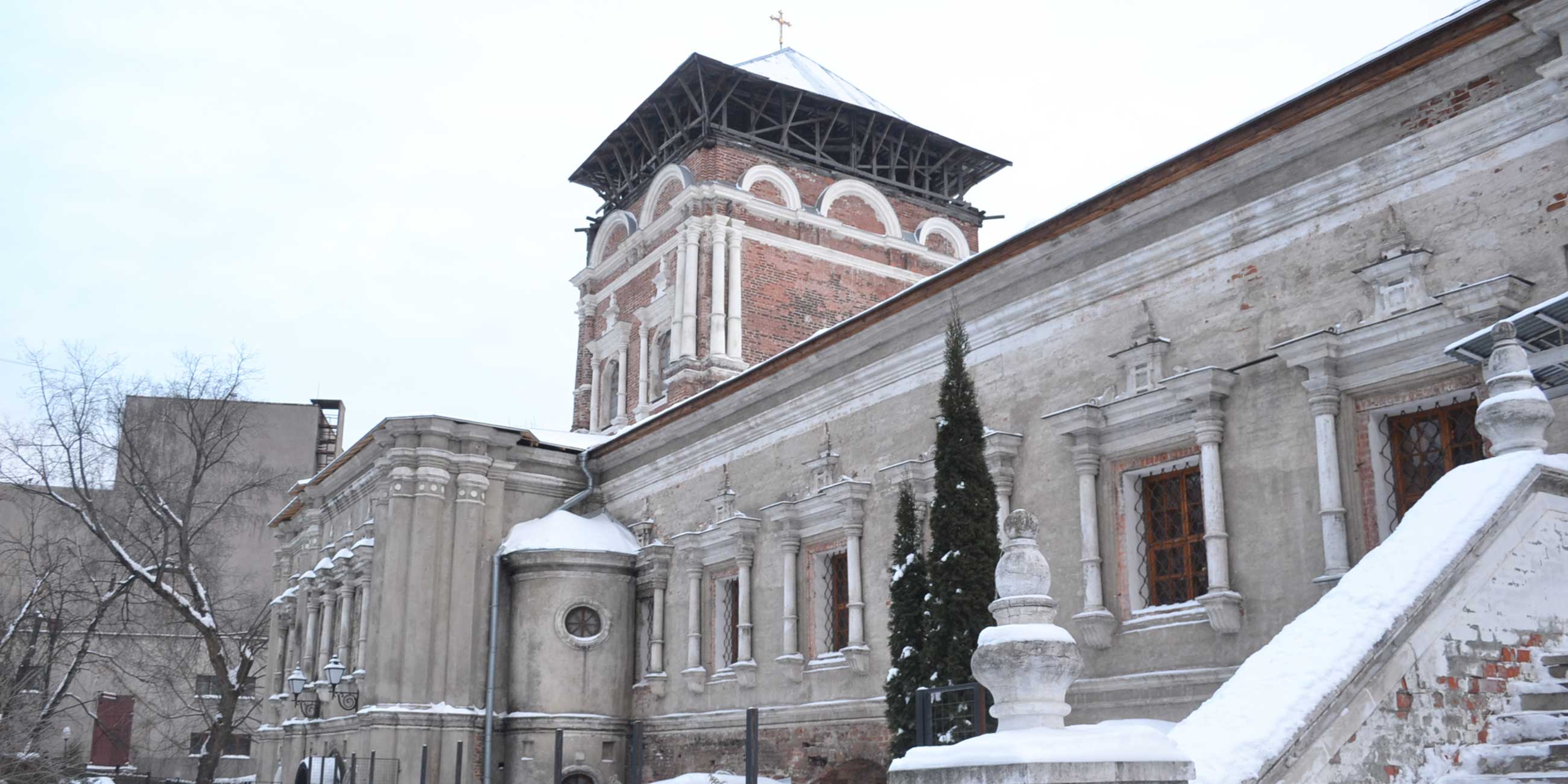 Рядом с монастырем (или тем, что от него осталось) стоит памятник конструктивизма — необычной архитектуры Дворец культуры, который тут построили в 1930-х братья Веснины. Действительно красивый и наполненный историей. Жаль только, что ради него снесли часть обители и уничтожили старинное кладбище.