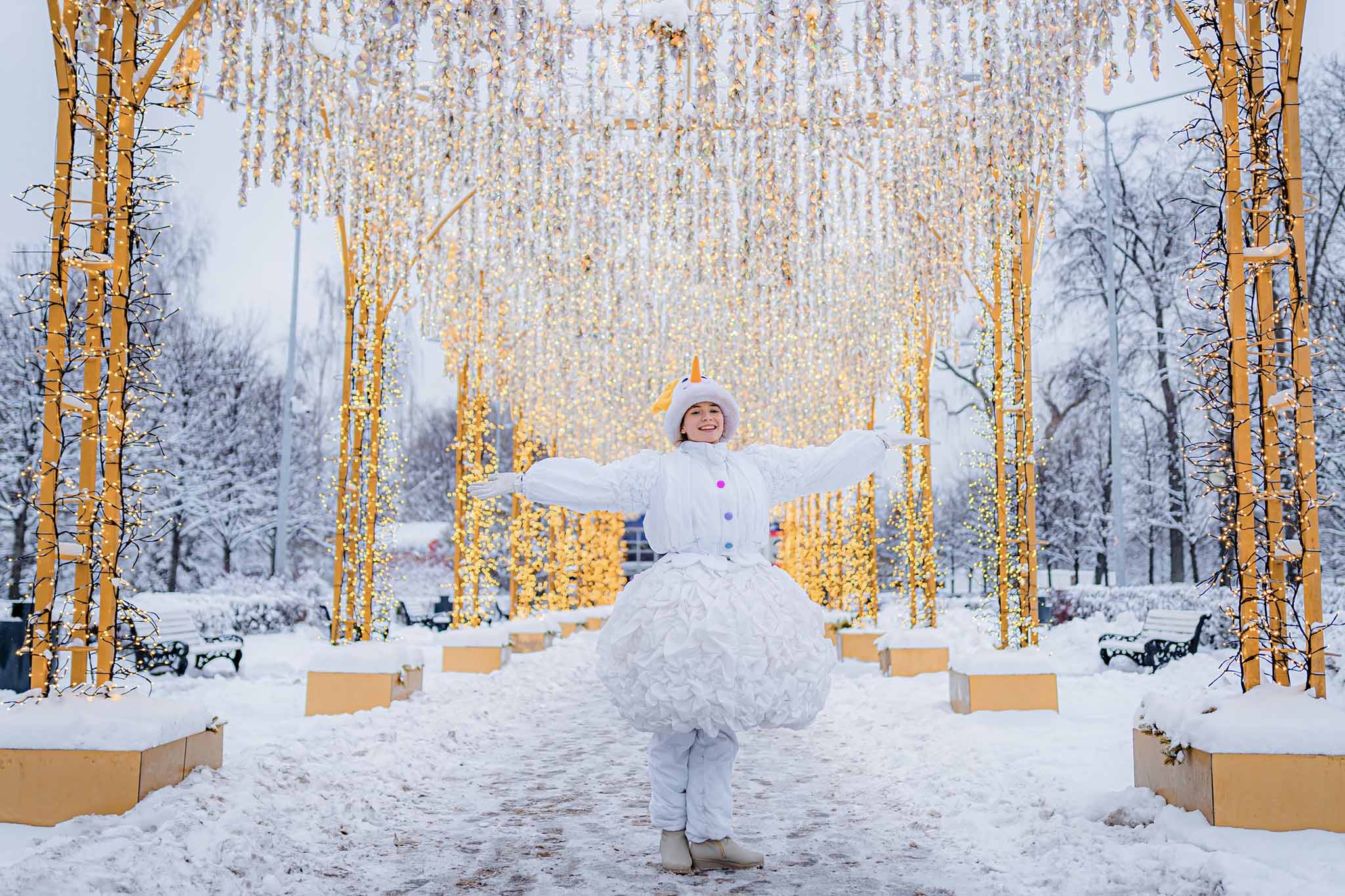 Главный атрибут Нового года — елка. В Московской усадьбе Деда Мороза она стоит в центре Изумрудной площади. Рядом с ней — сцена, где проходят основные уличные гулянья.