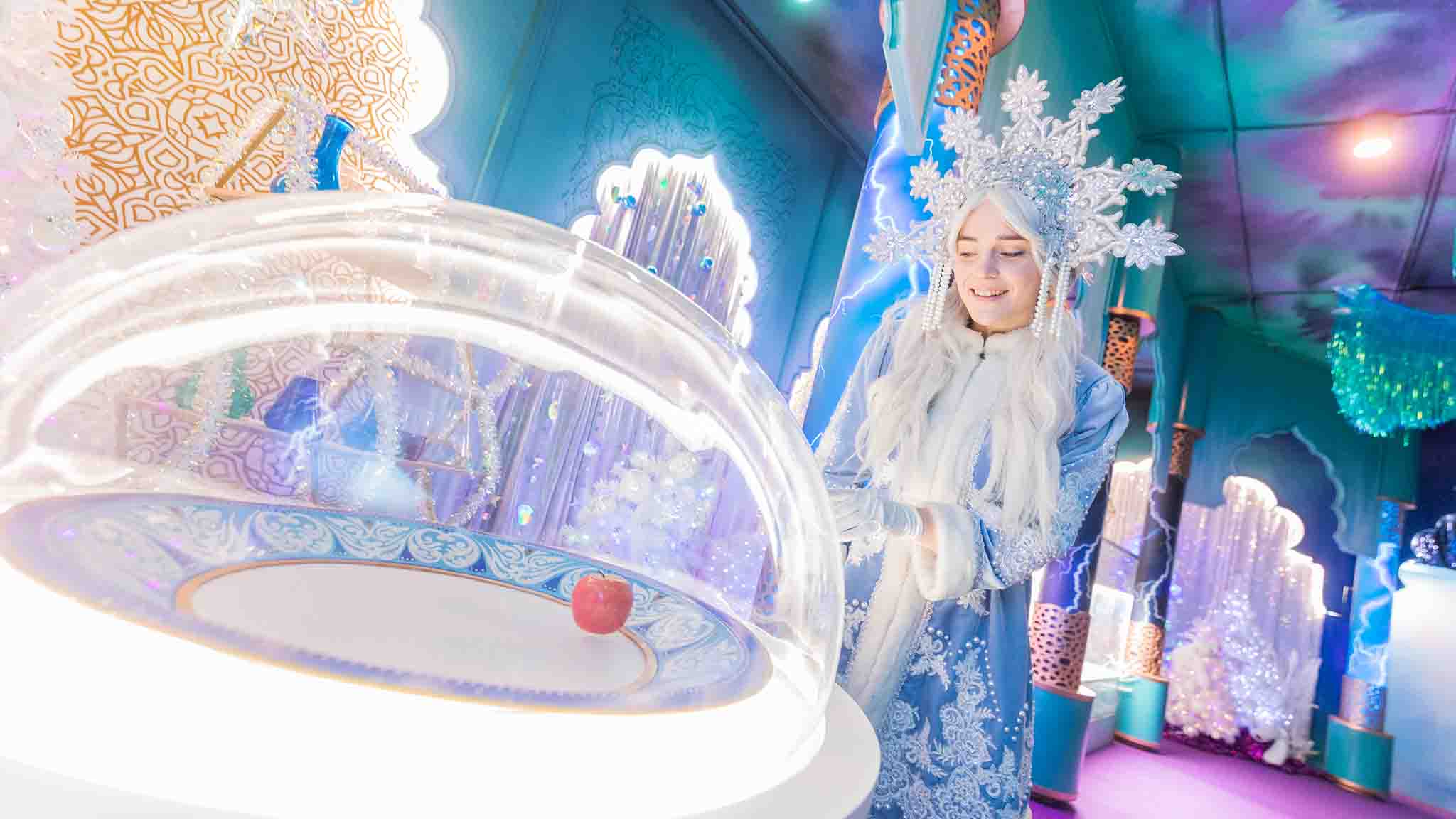 Терем Снегурочки — царство уюта и радушия. Здесь есть волшебная печка, построенная самим Емелей из сказки и помогающая внучке Деда Мороза в делах кулинарных. А еще Снегурочка бережно хранит чудодейственные предметы из сказок: молодильные яблочки, аленький цветочек и другие.