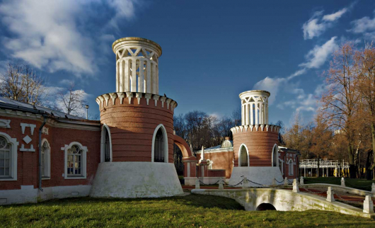 Все главные архитектурные красоты находятся со стороны улицы Архитектора Власова: арочные ворота, «горбатый» мостик, сторожевые башни. По сути, вход в усадьбу — это «турецкая крепость» в миниатюре, она напоминает о подвиге Репнина в ходе русско-турецкой войны: 28 июня 1791 года фельдмаршал выиграл последнее сражение на берегу Дуная и взял город Мачин.