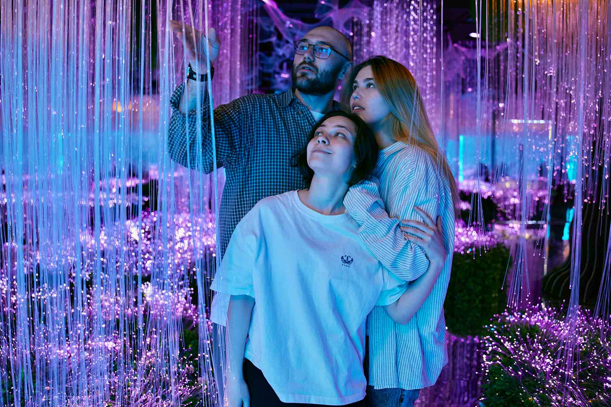 Арт-пространство «Эйфория» — это два этажа световых инсталляций, интерактивных арт-объектов, зеркальных залов и спецэффектов. Созданные с помощью мультимедийных технологий и искусственного интеллекта, пять тематических площадок погружают посетителей в атмосферу волшебства и удивительных возможностей.