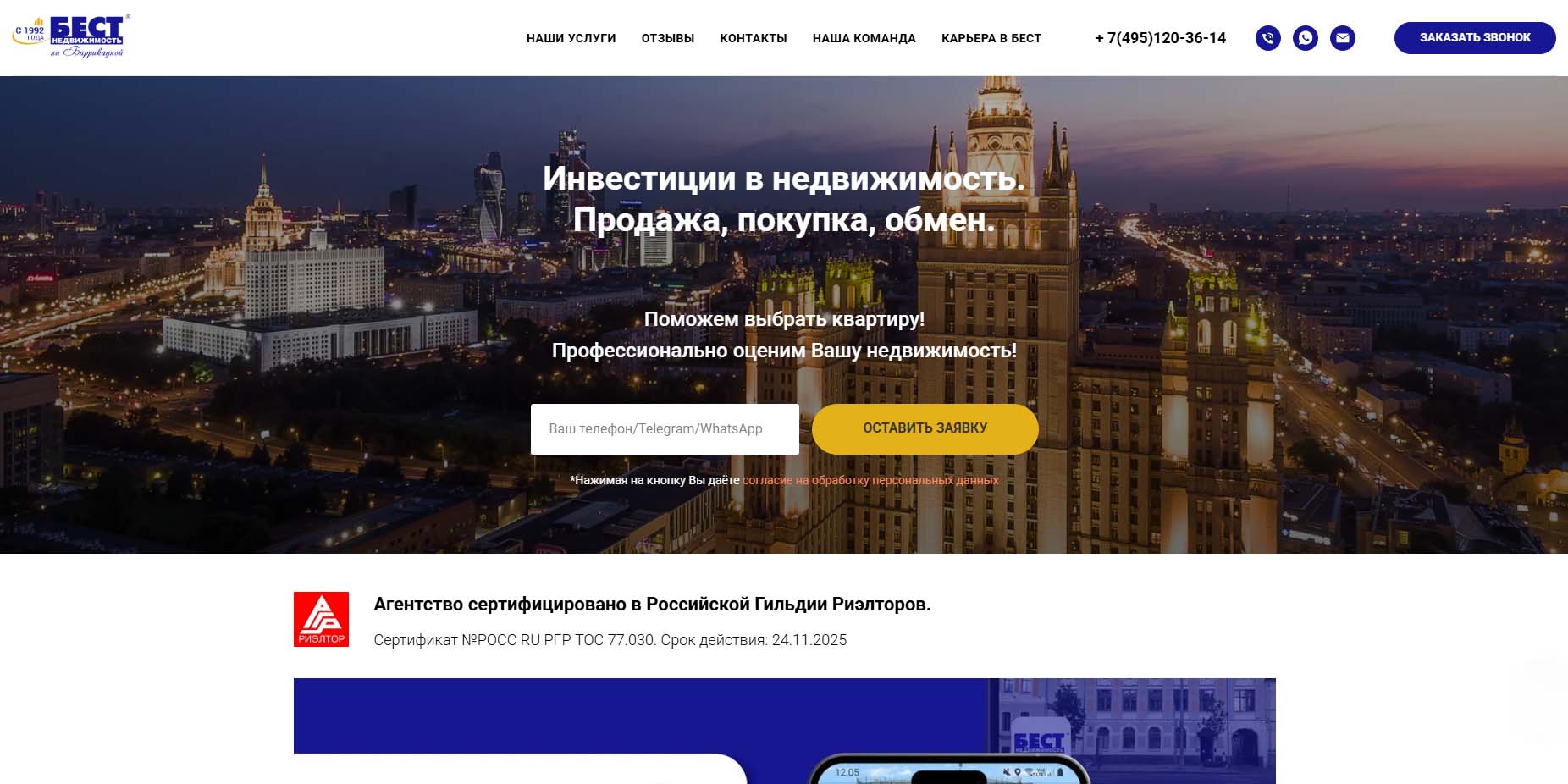 Известная в столице компания занимает уверенное положение на московском рынке недвижимости с 1992 года. К услугам клиентов — профессиональные юристы, риэлторы, нотариусы, аналитики и оценщики. Агентство в обязательном порядке проводит юридическую проверку объектов.