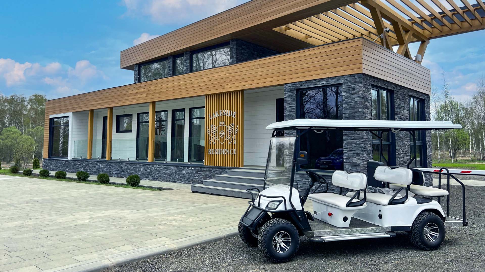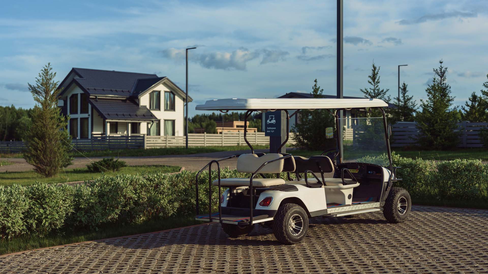 Особое внимание уделено комфортному передвижению внутри поселка: асфальтированные дороги, тротуары, гостевая парковка и даже гольфкар-такси. Безопасность обеспечивается КПП с круглосуточной охраной.