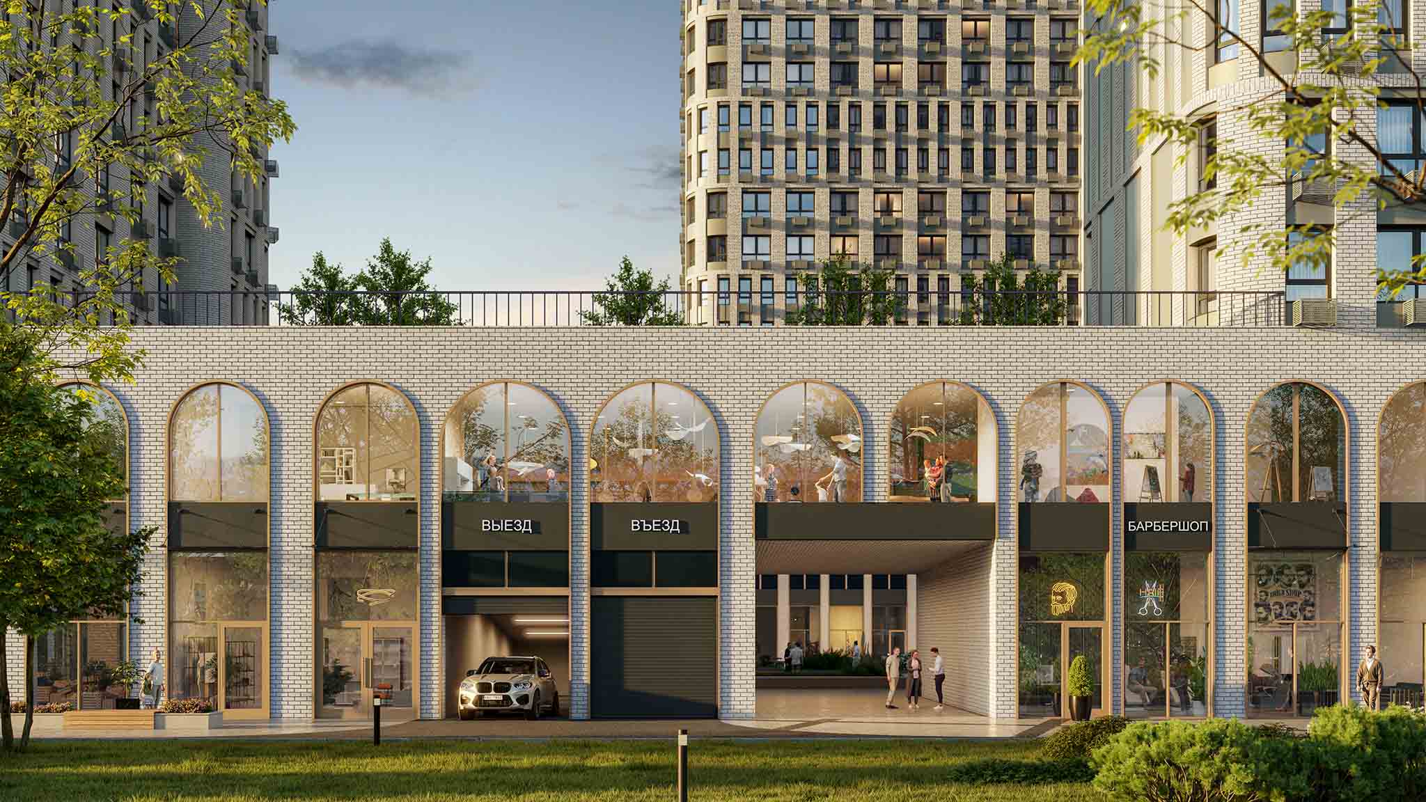В микрорайоне построят надземные паркинги, пешеходные бульвары, детские площадки, спортивный комплекс, две школы и три детских сада. На первых этажах предусмотрены магазины, кафе и удобные для жильцов сервисы. Корпуса сдаются поэтапно — с декабря 2023 до января 2026 года.
