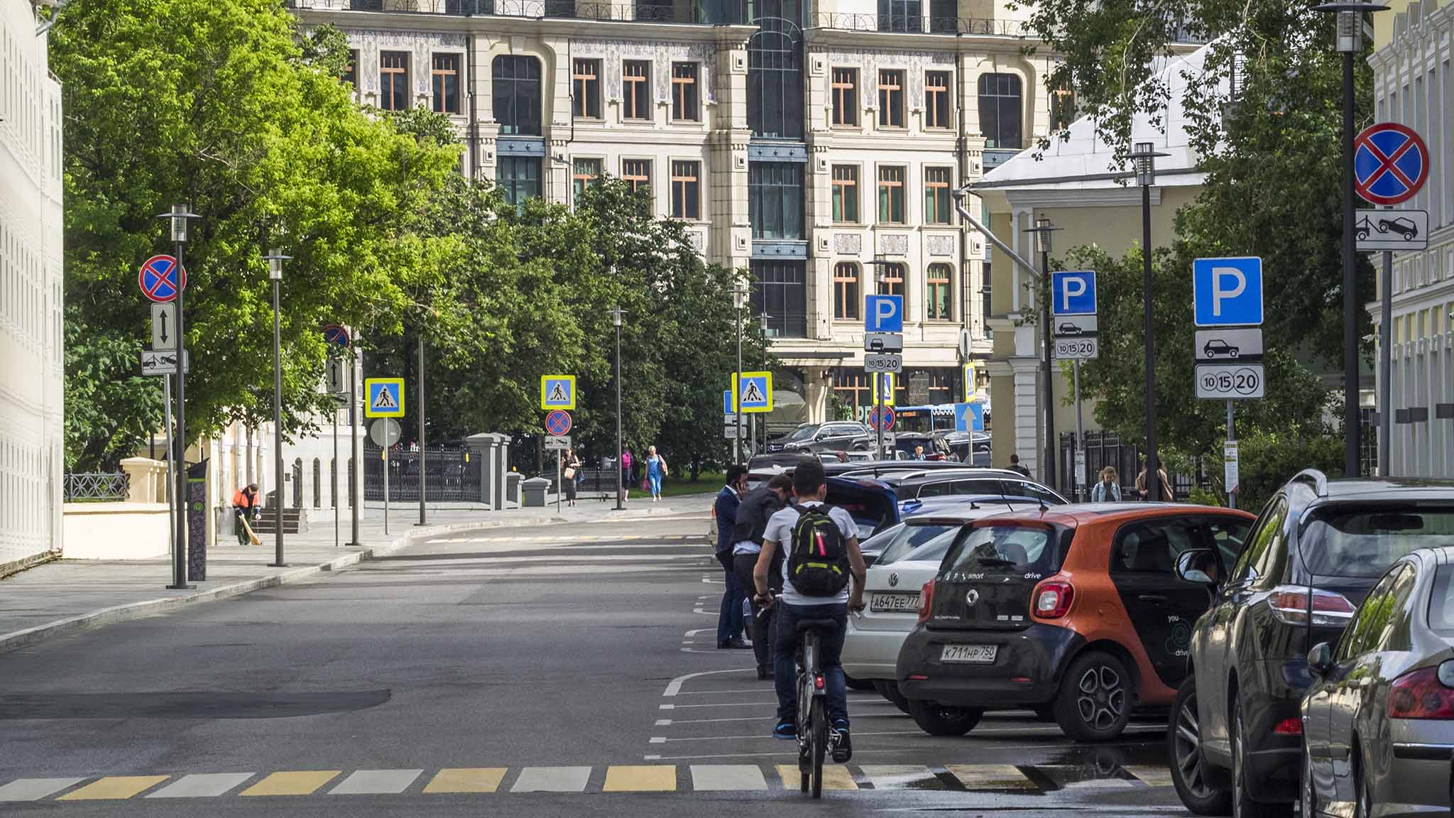 Реконструкция дорог, которая проводилась в Москве в последние годы, позволила не только расширить проезжую часть и тротуары, но и проложить велодорожки. Поездки по центральной части Москвы на двухколесном транспорте стали заметно проще. Однако велосипедистам следует быть начеку — до сих пор встречаются некультурные автолюбители, паркующие свои машины прямо на велодорожках так, что ни обойти, ни объехать.