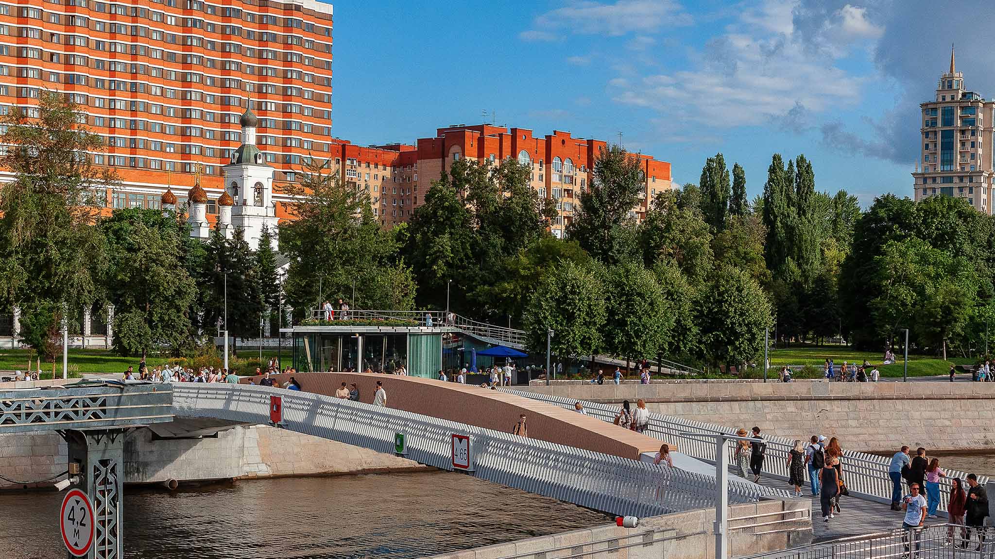 Отдельного внимания заслуживают мосты района. Крымский мост — единственный висячий мост над Москвой-рекой — один из самых красивых в столице. Лужнецкий метромост — единственный в Москве, на котором расположена станция метро, откуда открывается потрясающий вид на реку и окрестности. Внутри неё, кстати, постоянно проходят небольшие выставки.