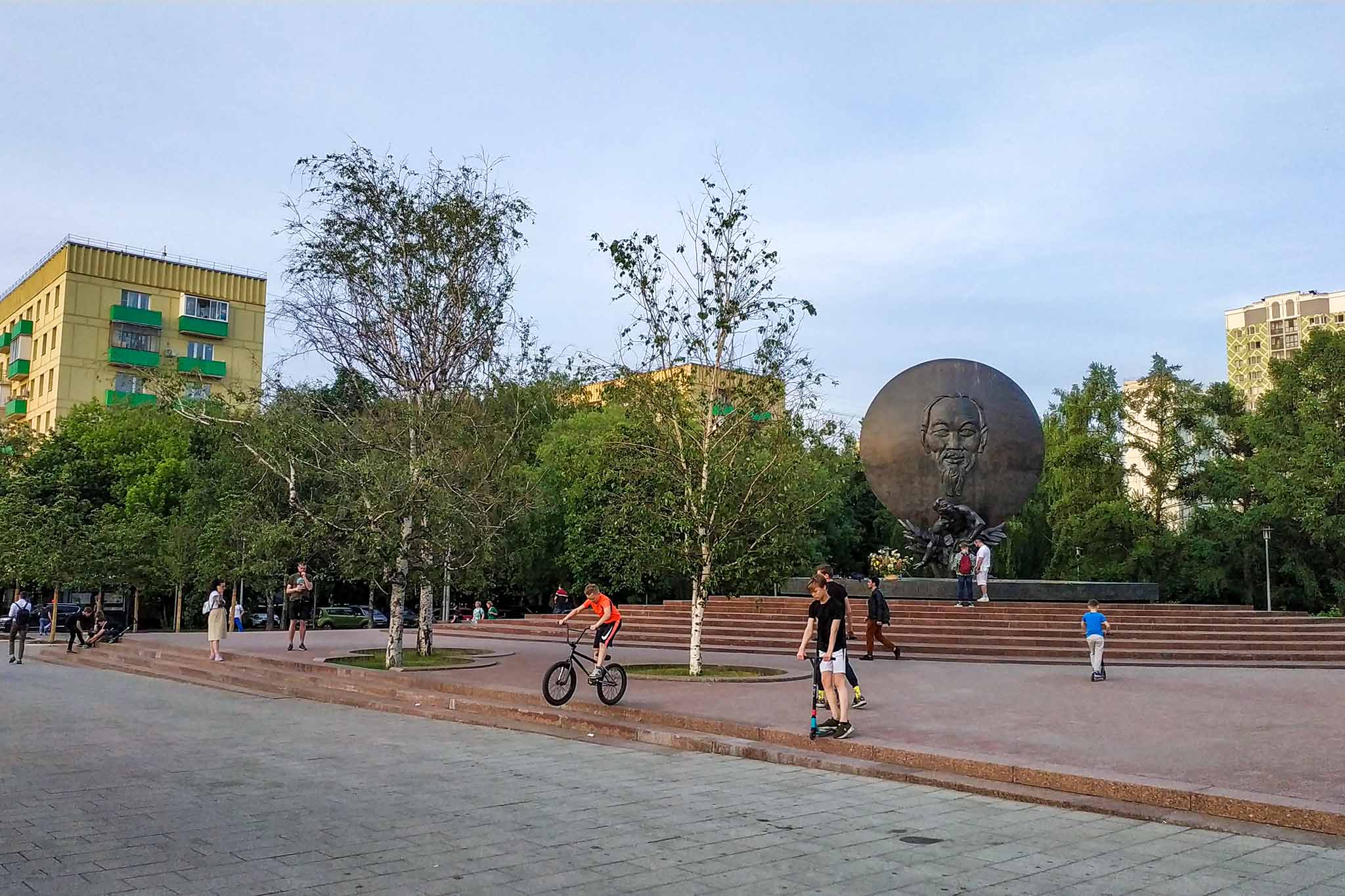 Не упомянутая ранее прогулочная зона, расположенная у метро «Академическая», на пересечении двух шумных магистралей. Интересна в первую очередь памятником вьетнамскому политическому деятелю, чьим именем названа площадь. Памятник представляет из себя портрет Хо Ши Мина на фоне окружности (символического солнца). Перед портретом — скульптура вьетнамца, поднимающегося с колен.