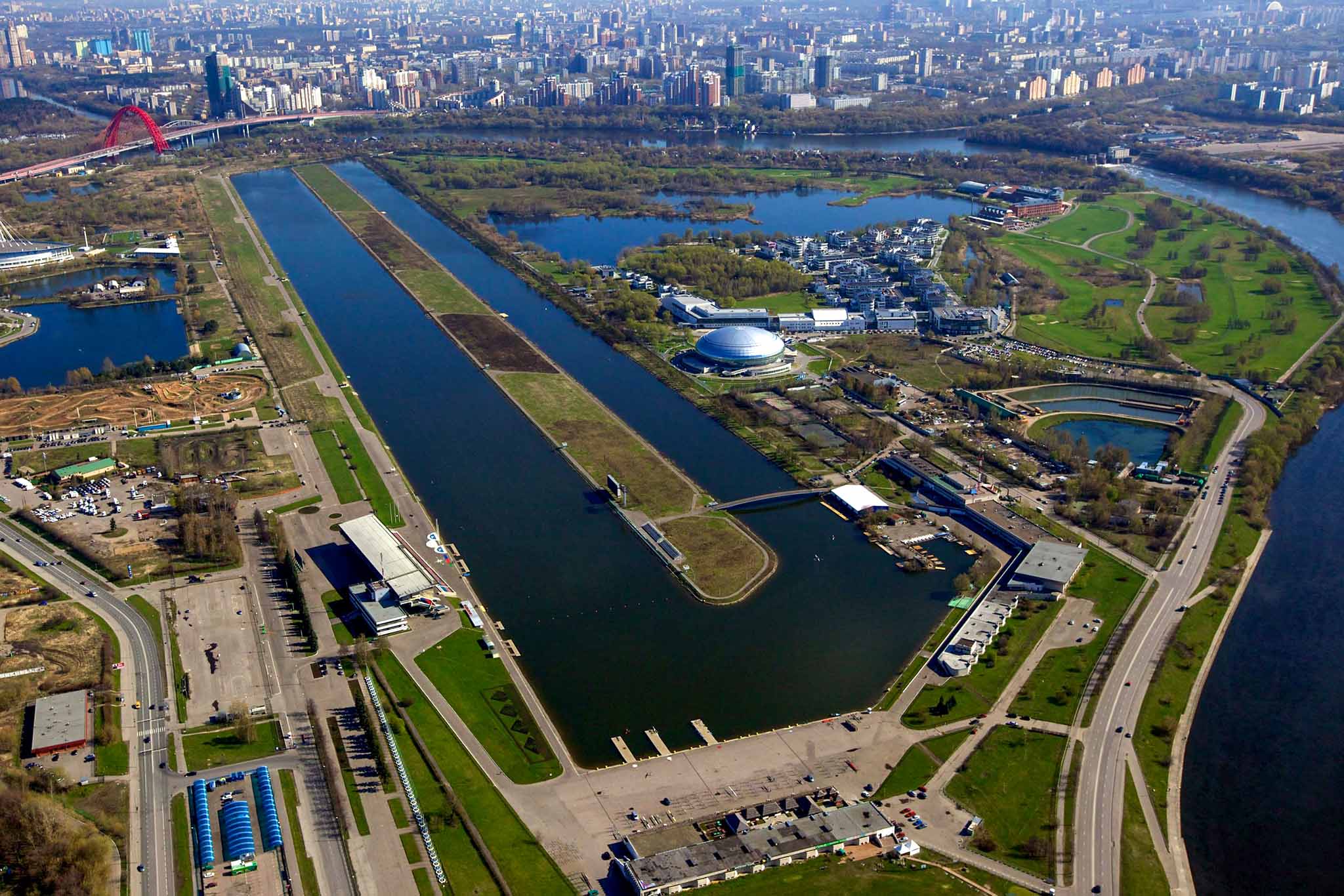 Первым делом следует отметить тройку самых важных спортивных объектов, с которых и начался новый виток развития Крылатского – Гребной канал, велотрасса и крытый велотрек. Гребной канал был построен еще в начале 70-х годов прошлого столетия, а в 2014 году закончилась его реконструкция. Модернизированный канал соответствует всем современным техническим требованиям и знаменит далеко за пределами нашей страны. По словам экспертов, ни один канал в мире не оснащен настолько хорошо, как столичный. Последним нововведением стало внедрение подвижной камеры, которая набирает скорость до 60 км/ч и фиксирует действия спортсменов.