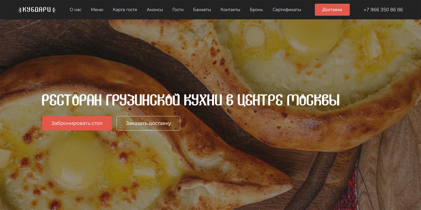 Небольшой, но приятный ресторанчик в центре Москвы назван в честь знаменитого грузинского пирога. Приготовить кубдари — большое искусство, которым в совершенстве владеют хозяева ресторана. Кроме классических грузинских блюд, гостям подают экзотику — хинкали с креветкой том-ям, хачапури три сыра, мацони с медом и грецким орехом. Вина преимущественно грузинские, но есть напитки из Европы и Нового Света — на любой вкус.