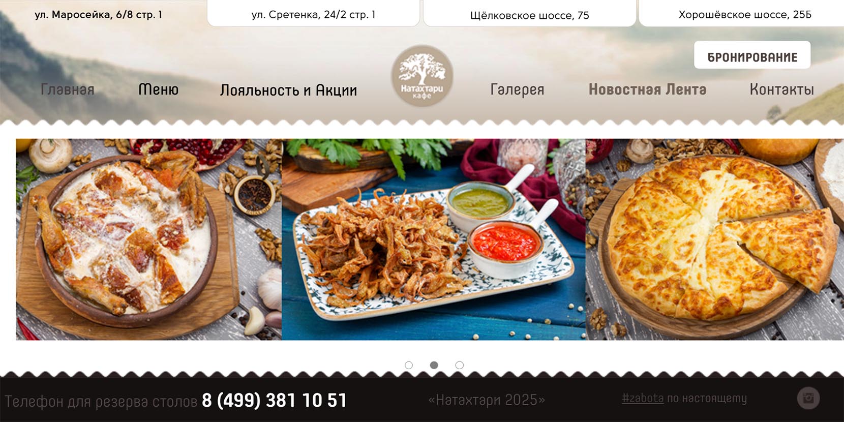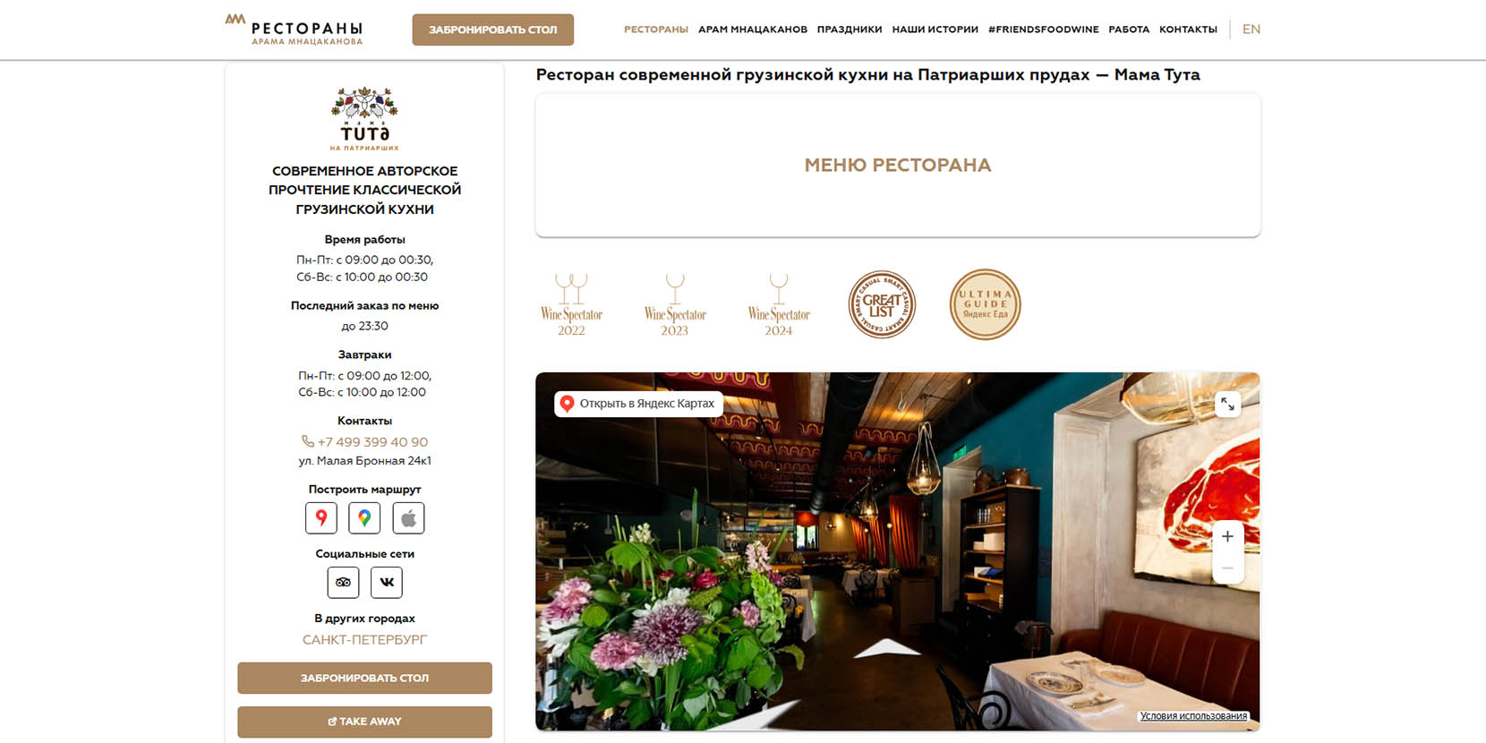 Ресторан возле станции метро «Кузнецкий Мост» — одно из 17 семейных заведений, которые работают в Москве под одним брендом. Здесь любят пообедать и поужинать те, кто понимает толк в грузинской кухне. Авторскими рецептами занимается бренд-шеф Русико Шаматава — кулинарный гений, которая превращает обычные блюда в настоящие произведения искусства.