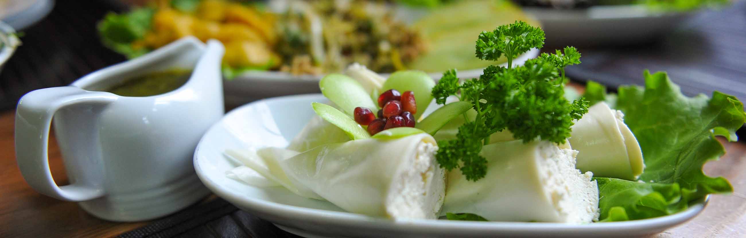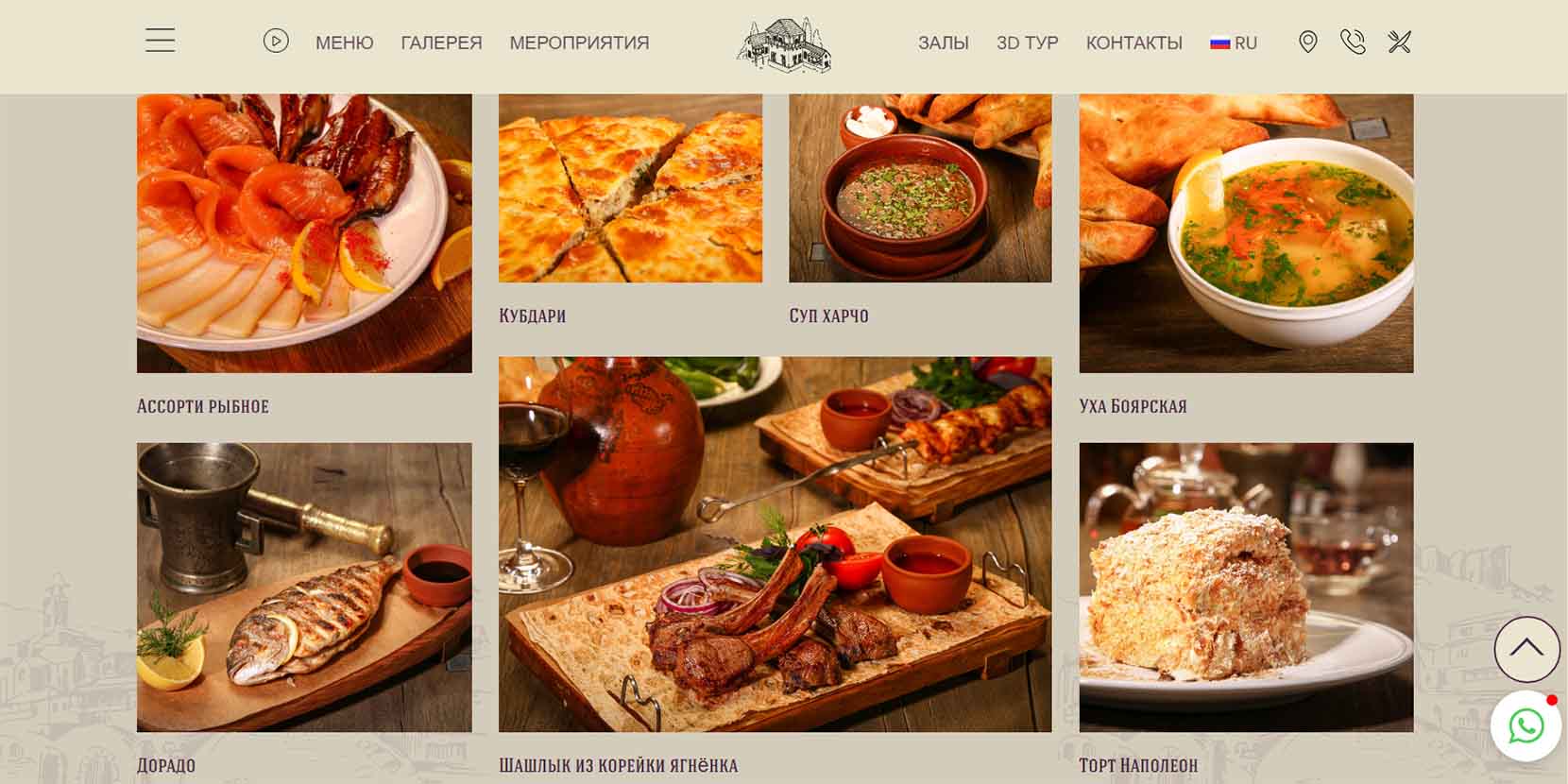 Здесь готовят как классическую грузинскую кухню, так и современную. Огромное меню, по которому можно составить гастрономическую карту Грузии. Здесь можно попробовать хинкали, сваренные в вине, аджарули с грушей и ашмело, толму и мацони из буйволиного молока.