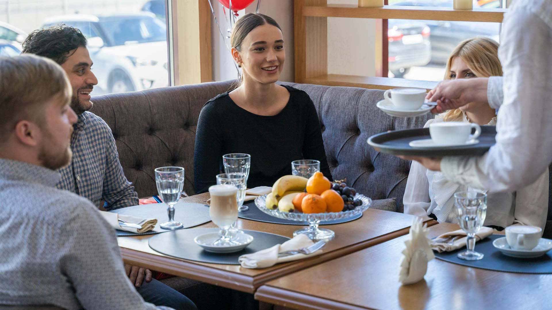 Приветливый, ненавязчивый, но при этом внимательный персонал — залог того, что клиент никуда не опоздает после завтрака и уйдет из кафе сытым и довольным.