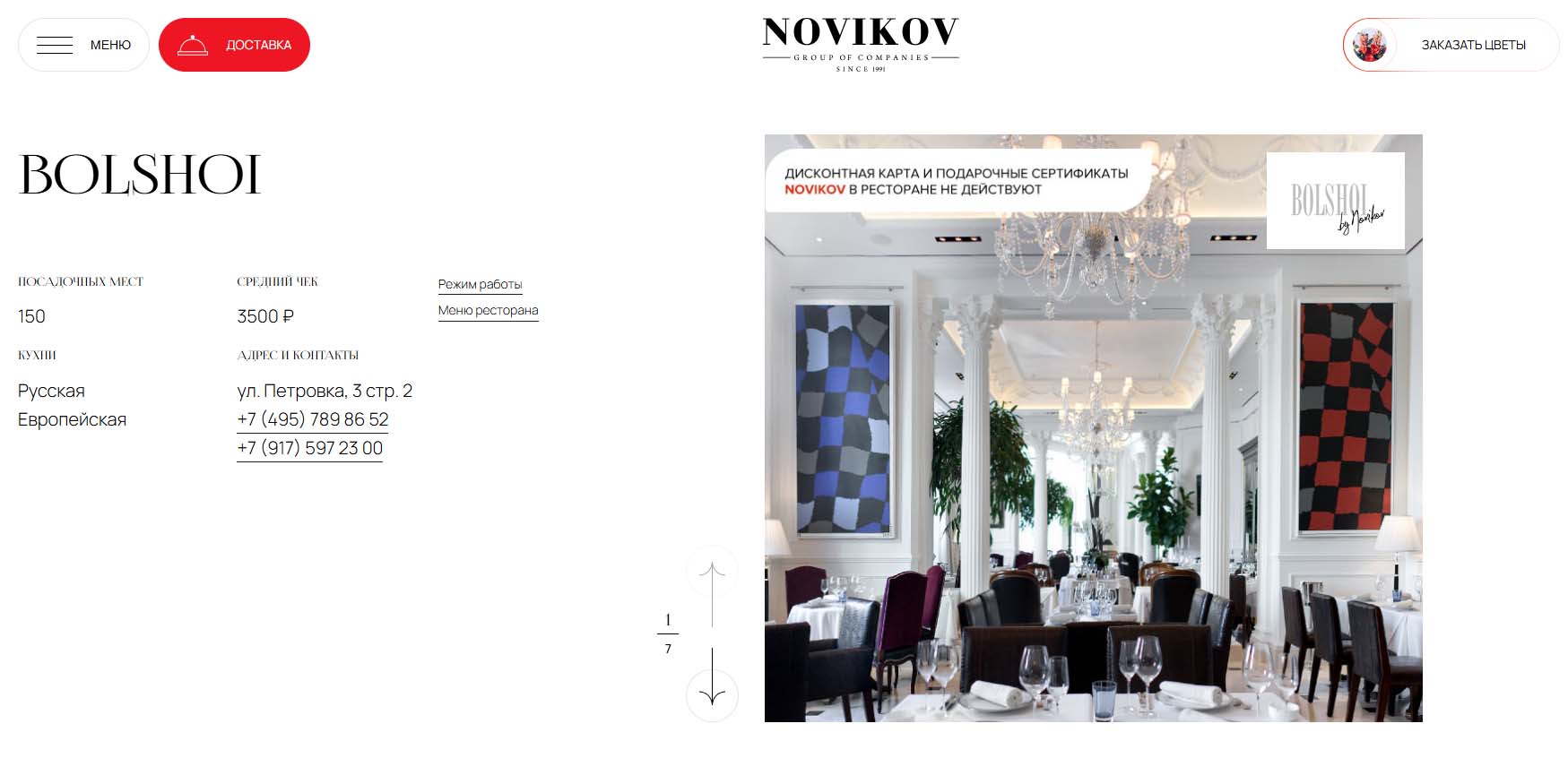 Заведение современной русской кухни в холдинге ресторатора Аркадия Новикова. Отдельного меню завтраков нет, но в основном вполне можно выбрать и легкую, и сытную трапезу. Много русских специалитетов, сыров и морепродуктов.
