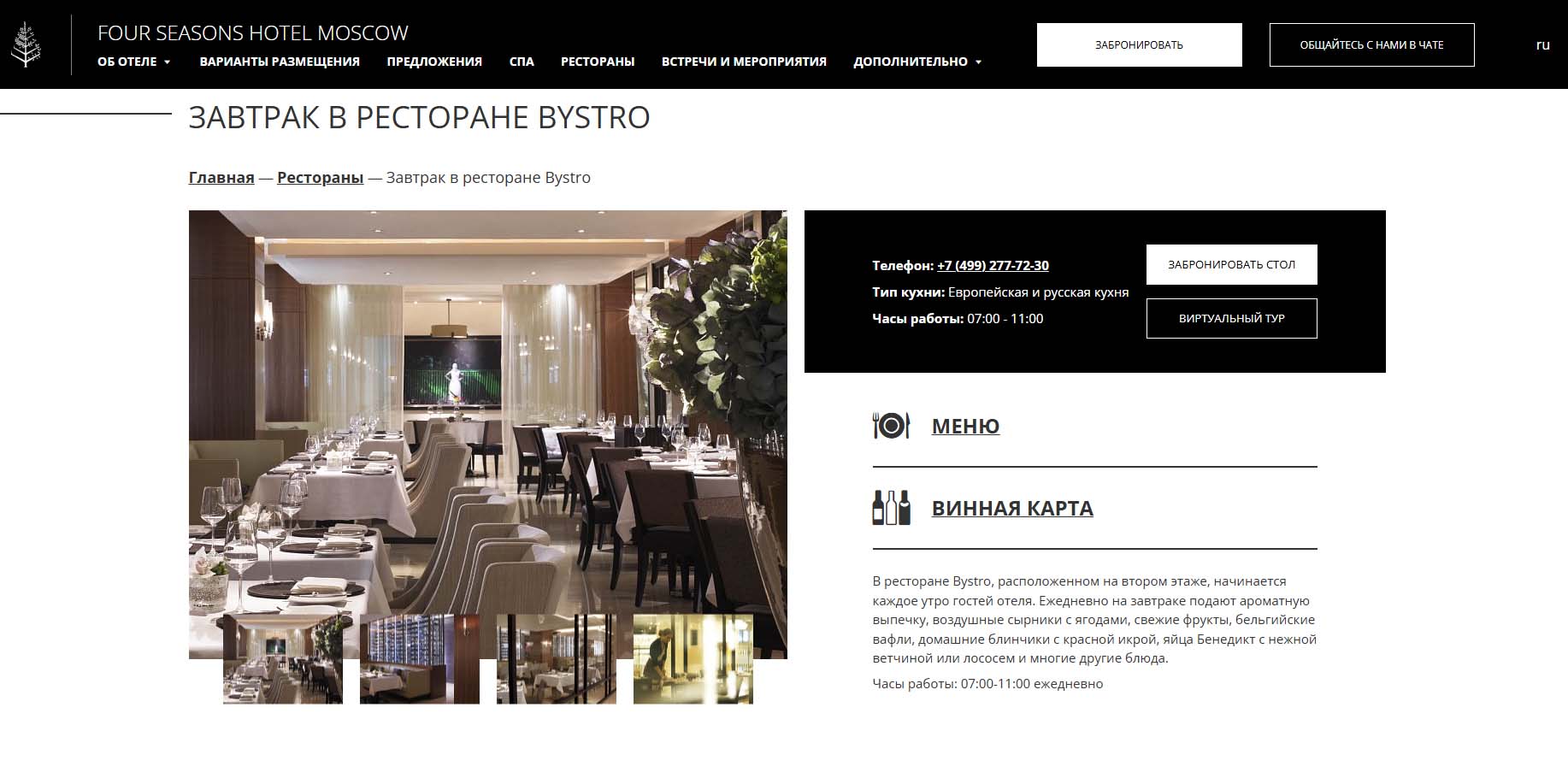 | Завтраки | в будни — с 8:00, в выходные — с 9:00 до 16:00 |