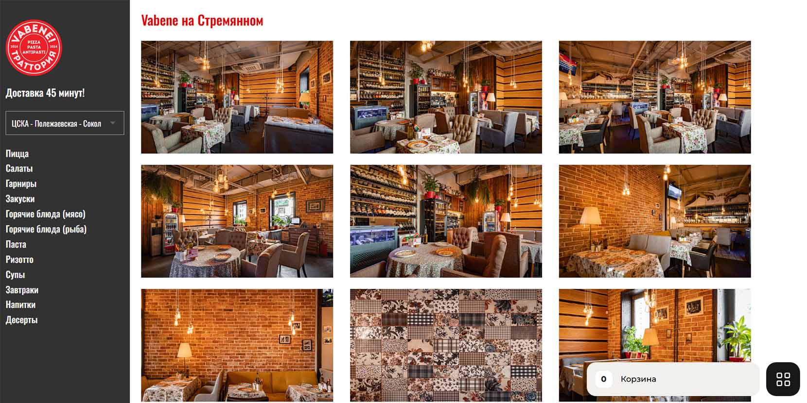 Итальянский ресторан возле станции метро «Театральная» — заведение с чуть завышенными ценами. Возможно потому, что пиццерия расположена в самом в центре Москвы. Здесь подают блюда итальянской кухни — пасту, равиоли, ризотто, рыбу и морепродукты. Готовят здесь из простых продуктов по семейным рецептам. Кухня такая, какой ее знают итальянцы в Италии.