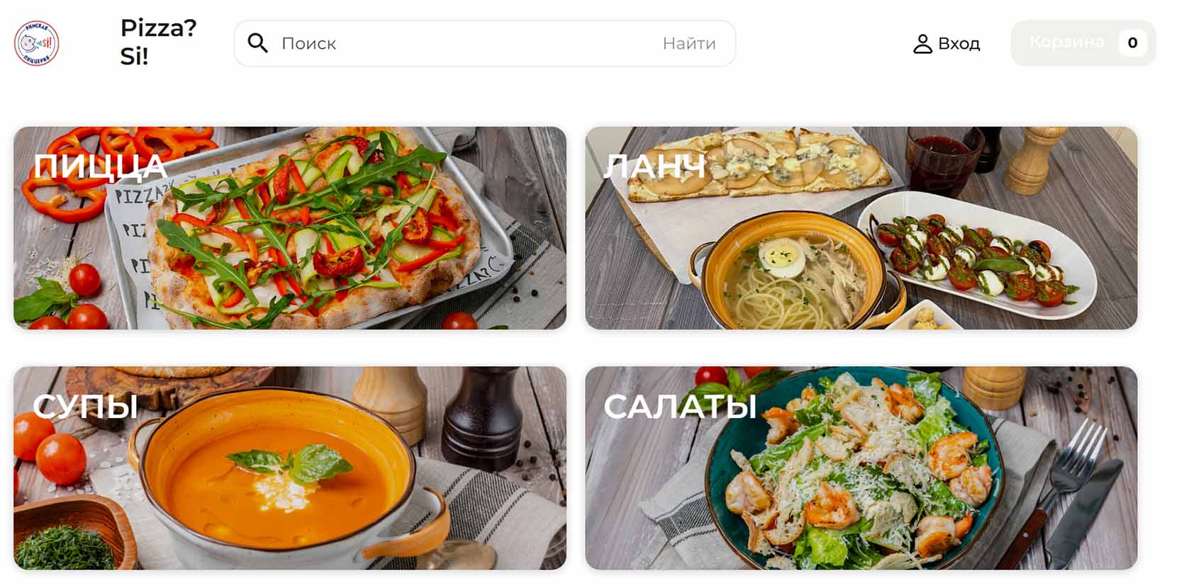 | Цены | Маргарита — 825 руб, Парма — 1012 руб., Фирменная Пицца Si — 1150 руб. |