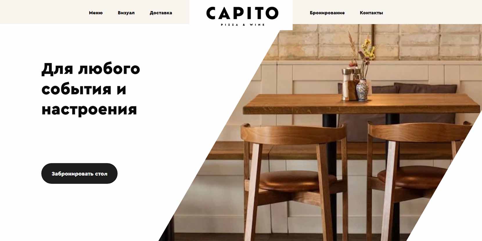 Здесь много света, пространства, воздуха и вкусной еды. Создатели этого ресторана охарактеризовали себя как «гастроэнтузиасты и адепты гедонизма». Эти слова они подтверждают стабильно вкусной и качественной кухней. Италия здесь — это не просто правильно подобранное меню, а атмосфера, эстетика и умение наслаждаться жизнью. В «Capito» можно заказать классическую пиццу («Маргариту», «Четыре сыра», «Пепперони»), или же попробовать более авторскую вариацию блюда, например, с яйцом и трюфелем, или с пастрами с соусом песто и рукколой.