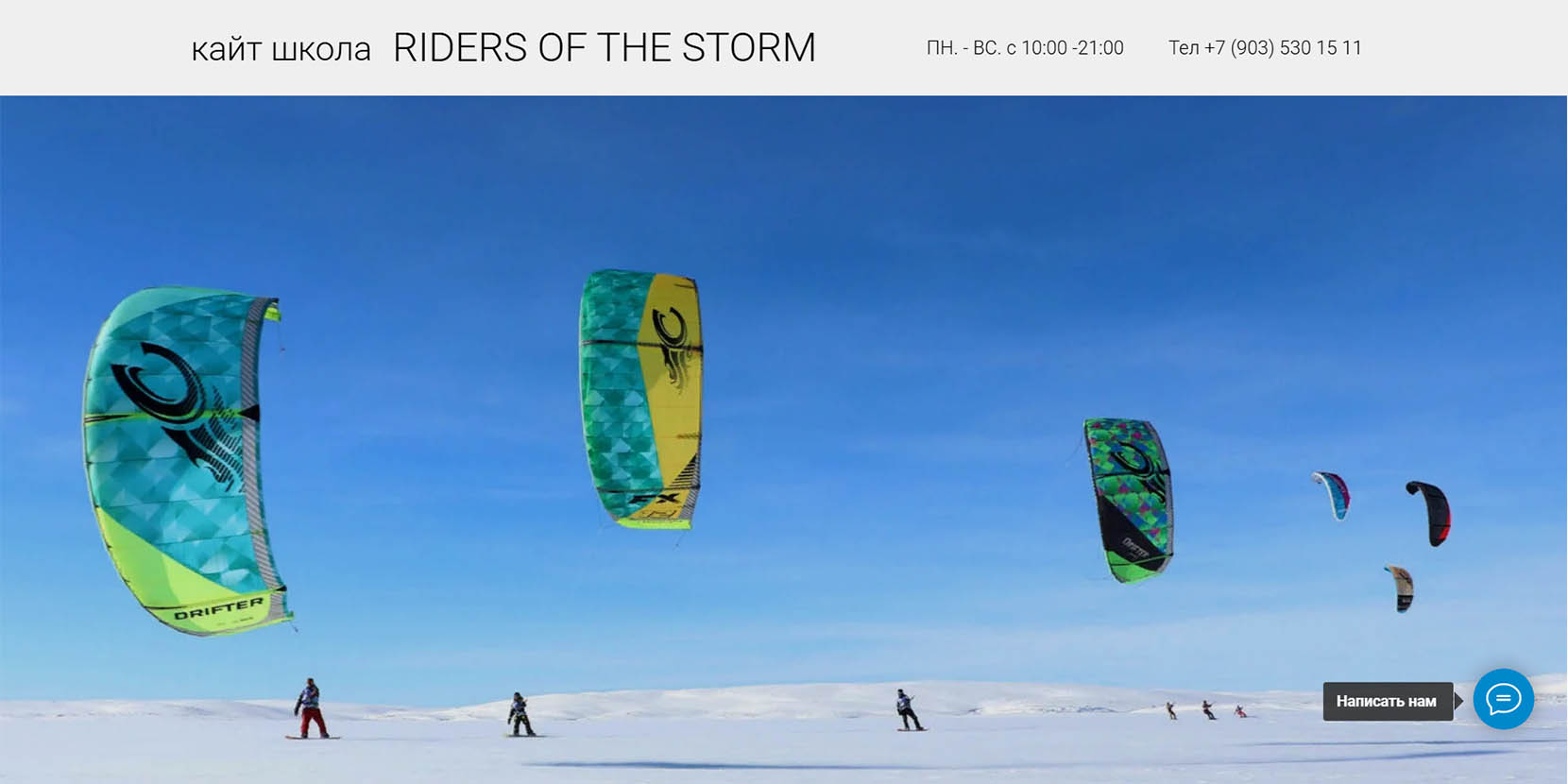 Школа с метким названием (дословно «Оседлавшие бурю»), отсылающая к хиту группы The Doors. Выезжают на Подольские и Дмитровские поля, в мытищинское Пирогово или под Домодедово. Базовый курс длится 10 часов с инструктором, плюс четыре часа самостоятельного катания. За это время студент школы осваивает три основных уровня подготовки.